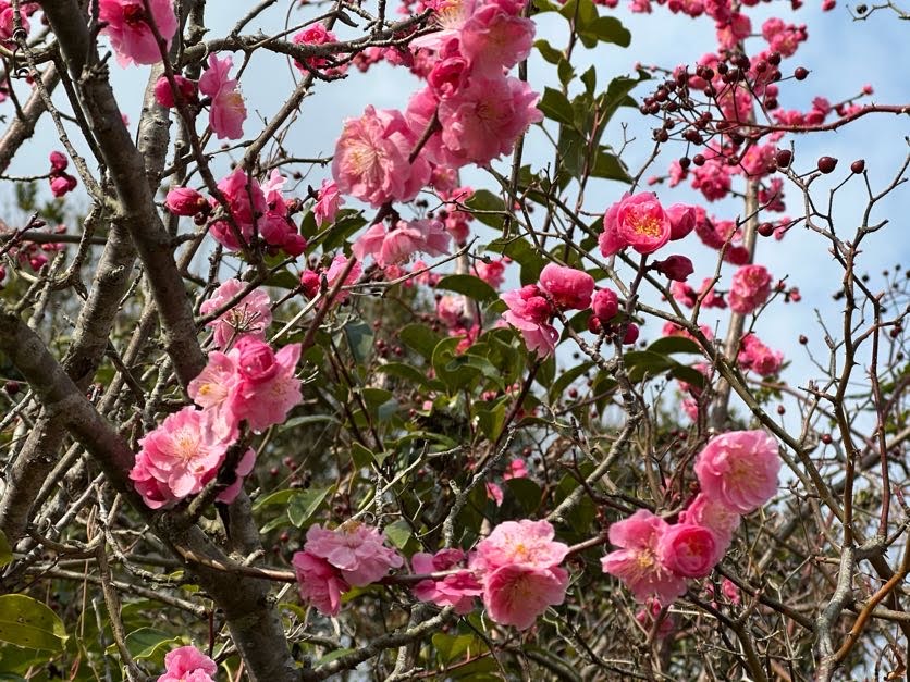Fさんが撮ってくれた花盛りの…八重梅?桃?!癒されます(*ノωノ)
