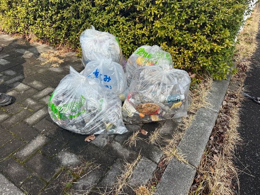 細かいものが多く、回収量はプラスチック70ℓ×3袋、ビンカンℓ×2袋の計5袋でした。