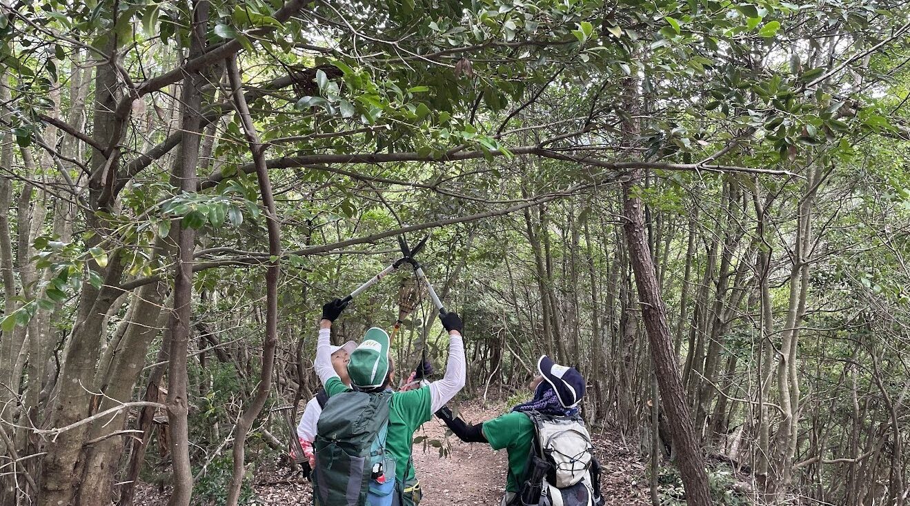 歩きながらの整備は人数あってこそ。手ハサミひとつでの参加が大きな力になります。