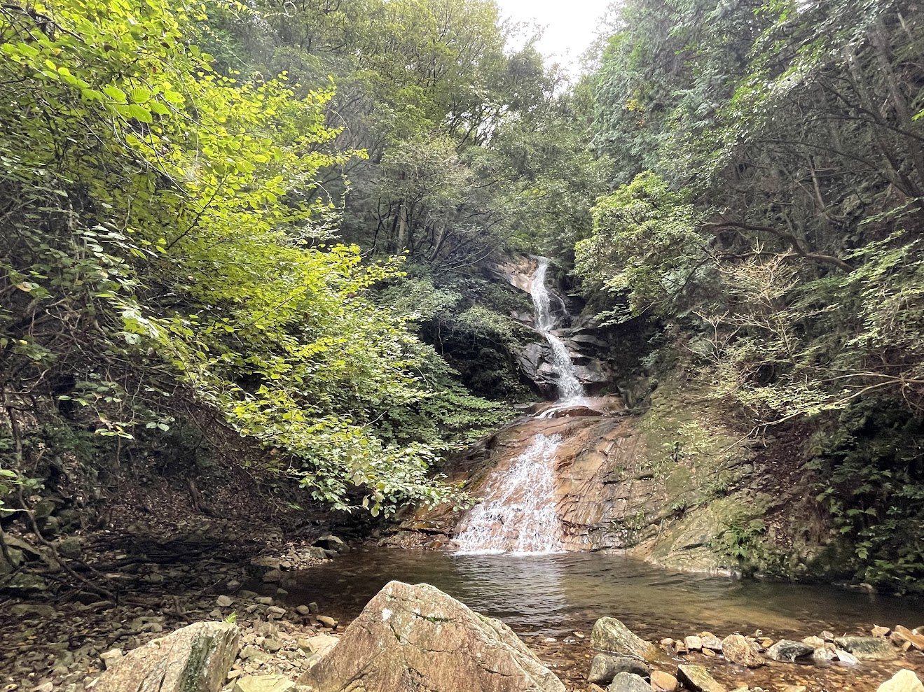 マイナスイオンを浴びてリフレッシュ。いざ、階段に取り付きます!