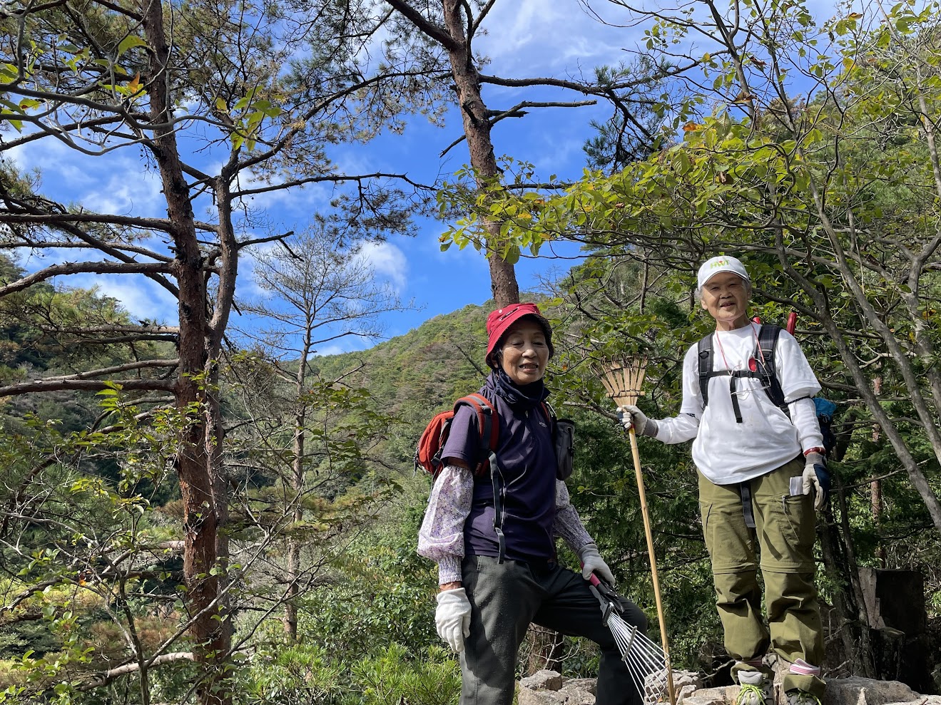 「整えましょう!」熊手隊長のTさんの掛け声でさっさっと掃いて整えていきます。