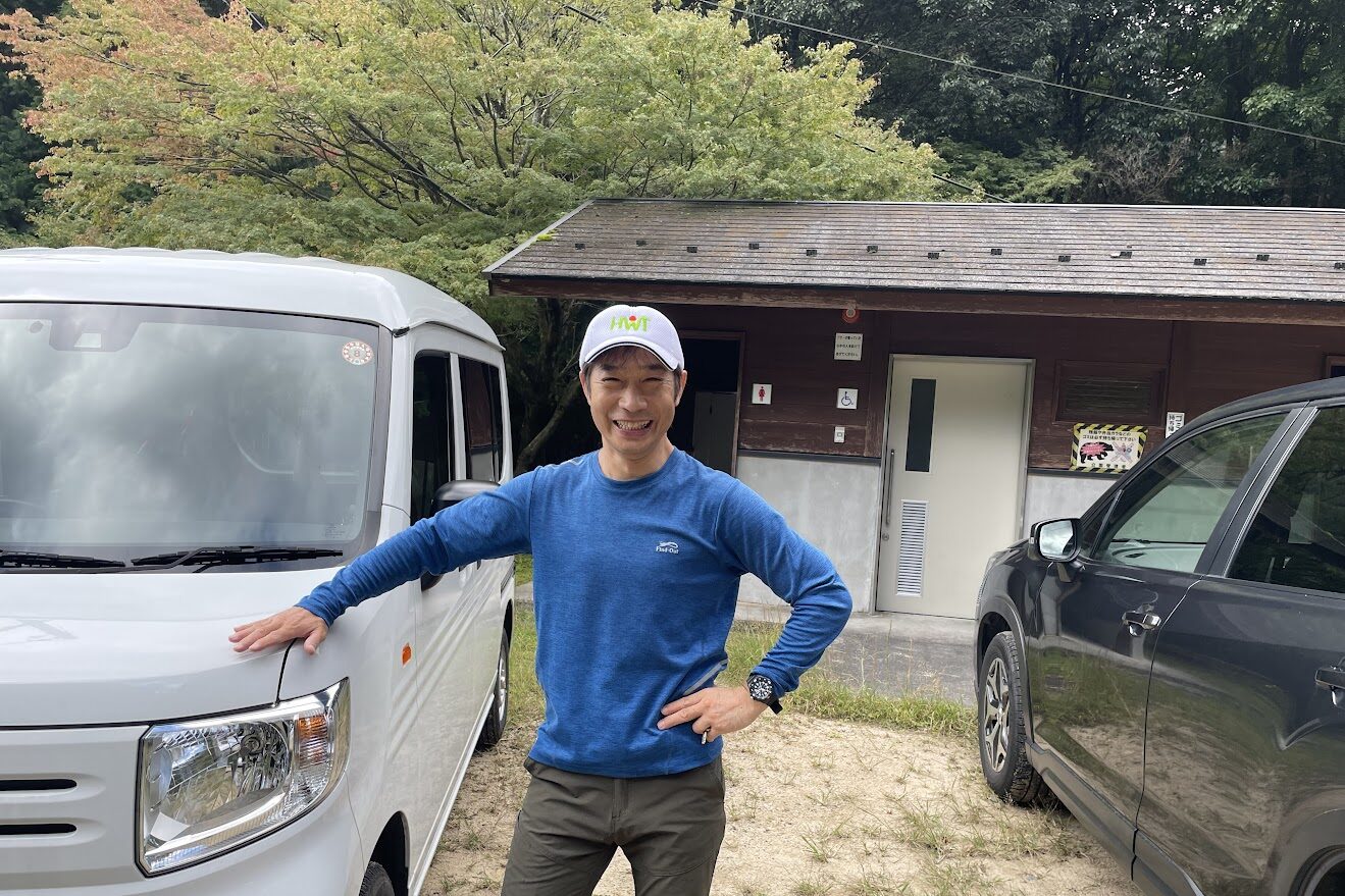 駐車場に到着。午後からお仕事のOさんはここまで。カメラを向けると手は腰&満面の笑顔で爽やか~♪今日も、お疲れさまでした!