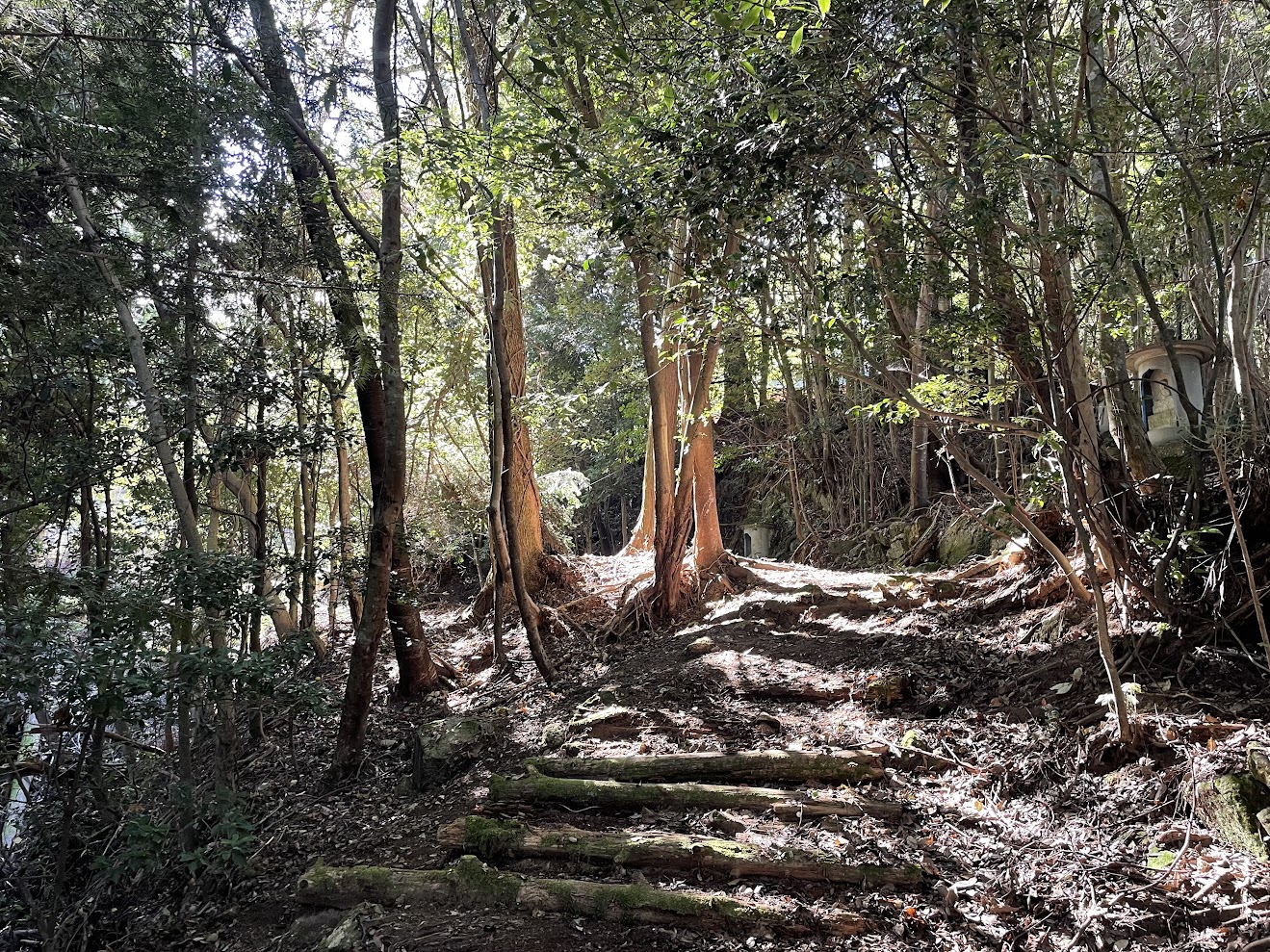 しっかりと掃いて階段石段の段がはっきりしたおかげで下りの安心感がばっちり!