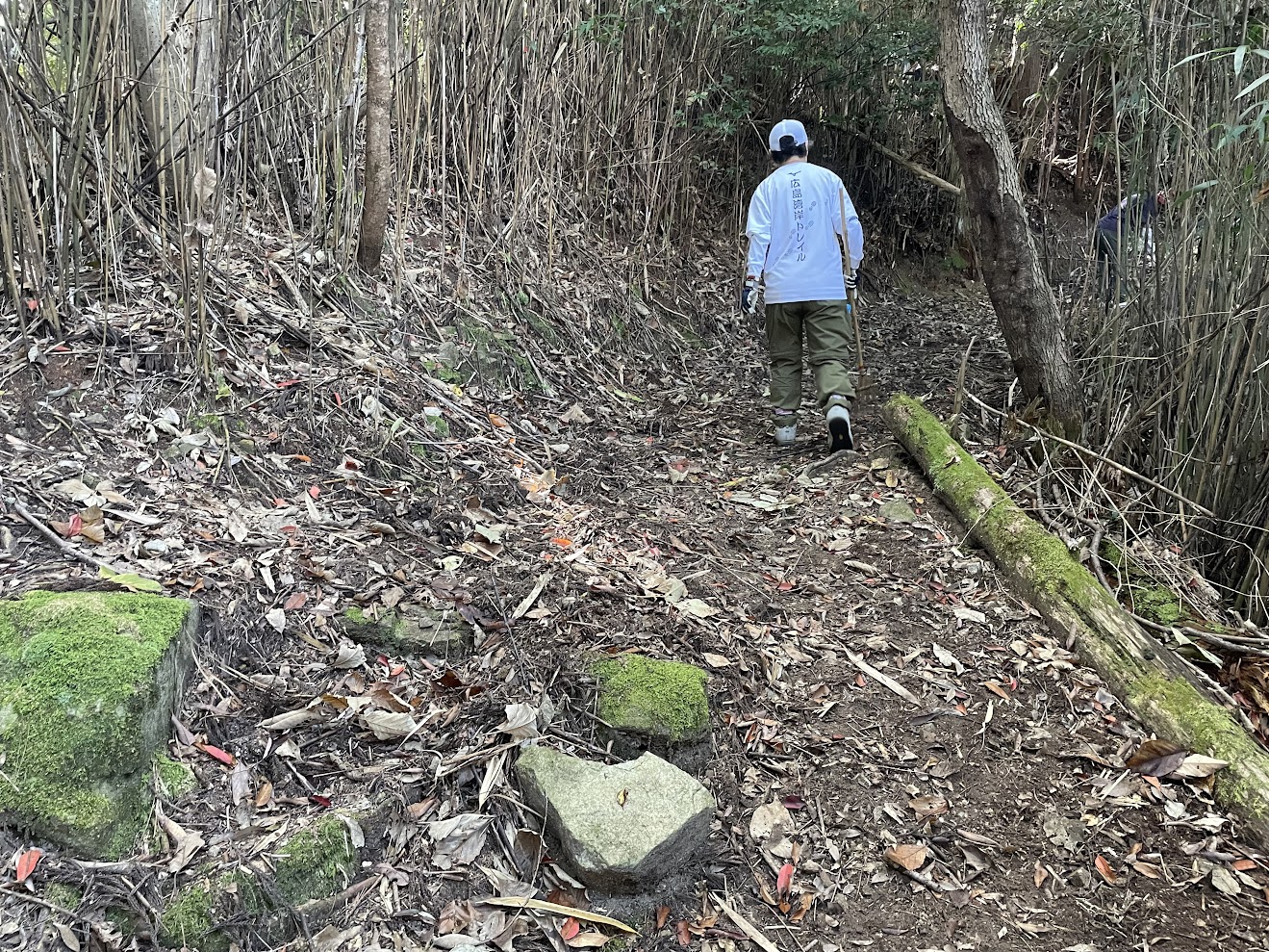 折れた竹を除けたり凸凹を踏み固めます。人が歩くだけで道が整っていきます。
