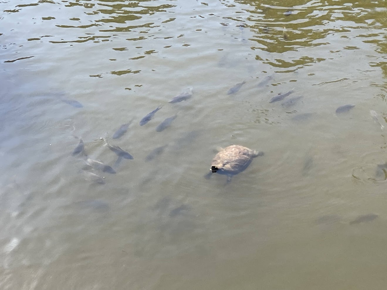 池の周りを歩くと、水面が波打ち、たくさんの影が寄ってきましたよ!