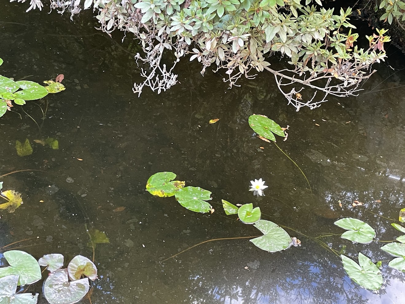 福王寺の本殿に戻ると、季節外れの小さな睡蓮が一輪咲いていました。可憐で可愛らしい(*^^*)