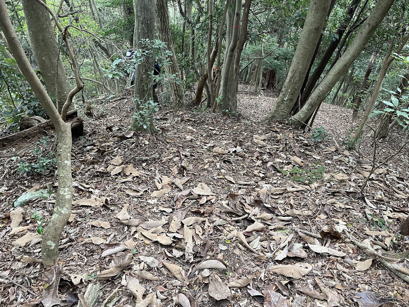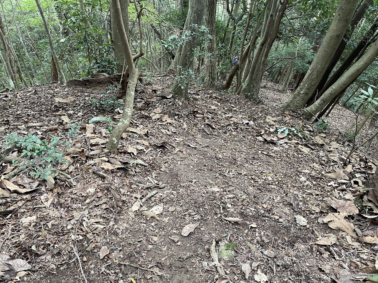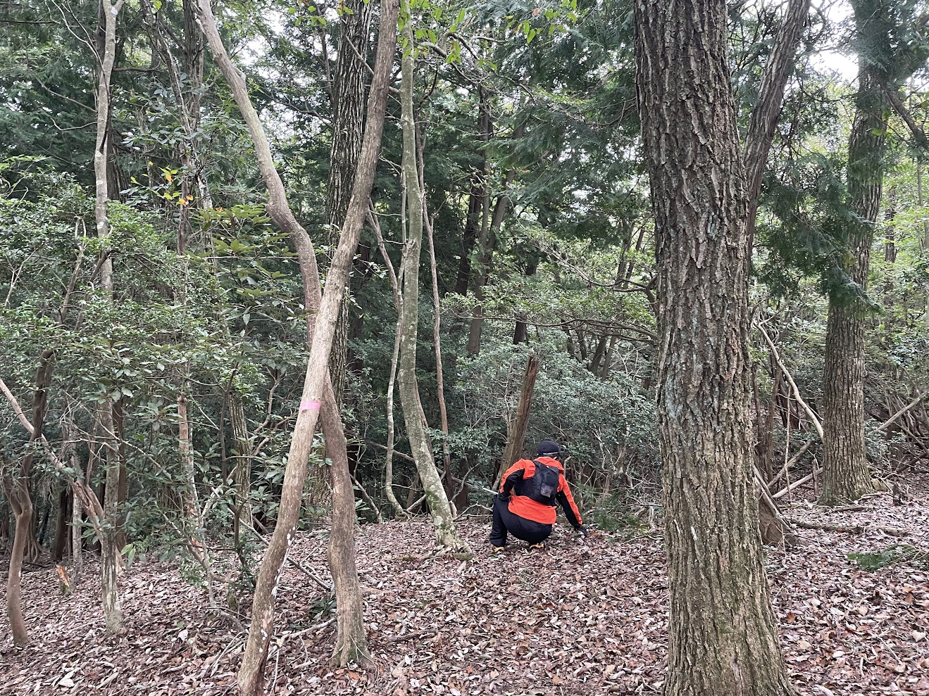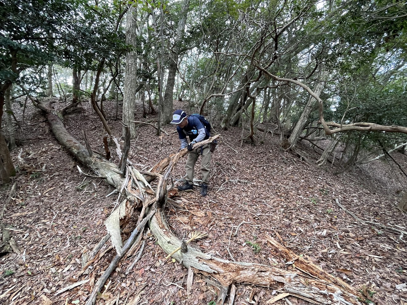 先頭のKさん。デビュー整備が古観音山の防災道路の倒木祭り、続いて灰ヶ峰の笹海討伐と一年のなかでもかなり重量級の整備が続いたため、サクサク歩きながらの整備に、「こんなんでいいのかなぁ?」と(≧▽≦)