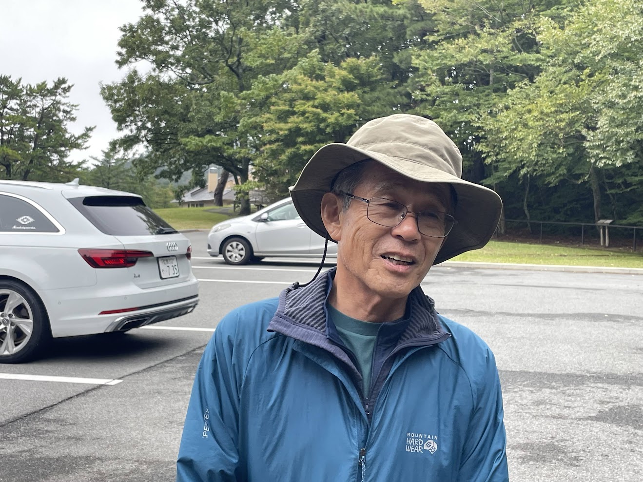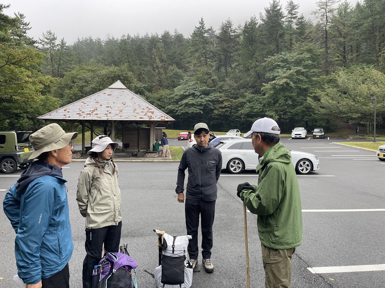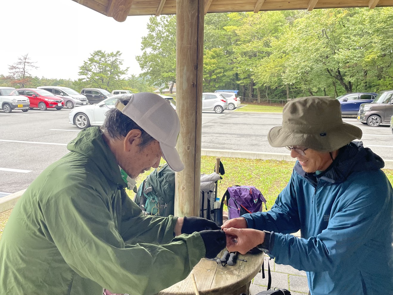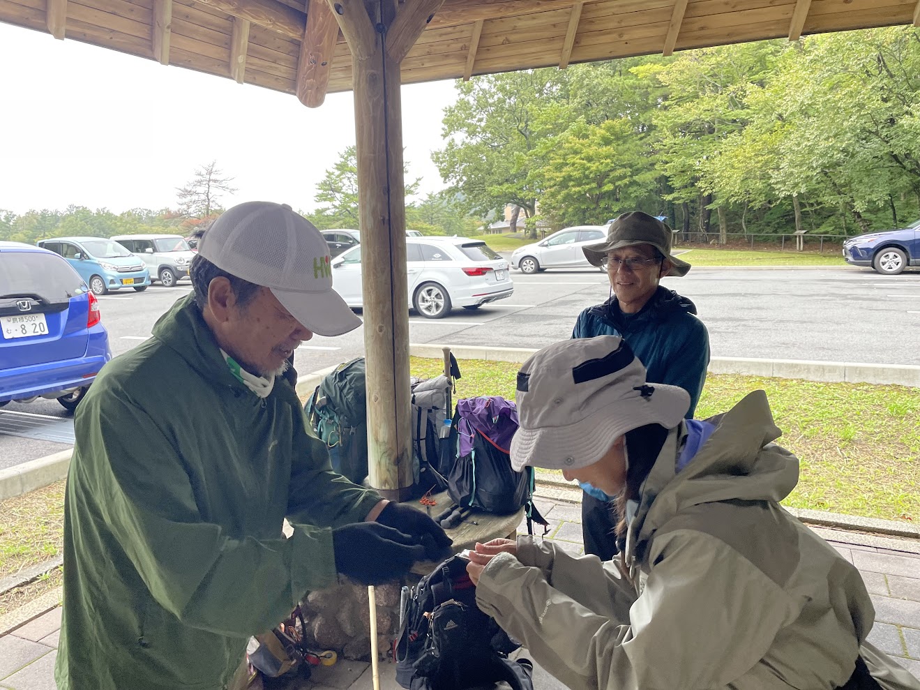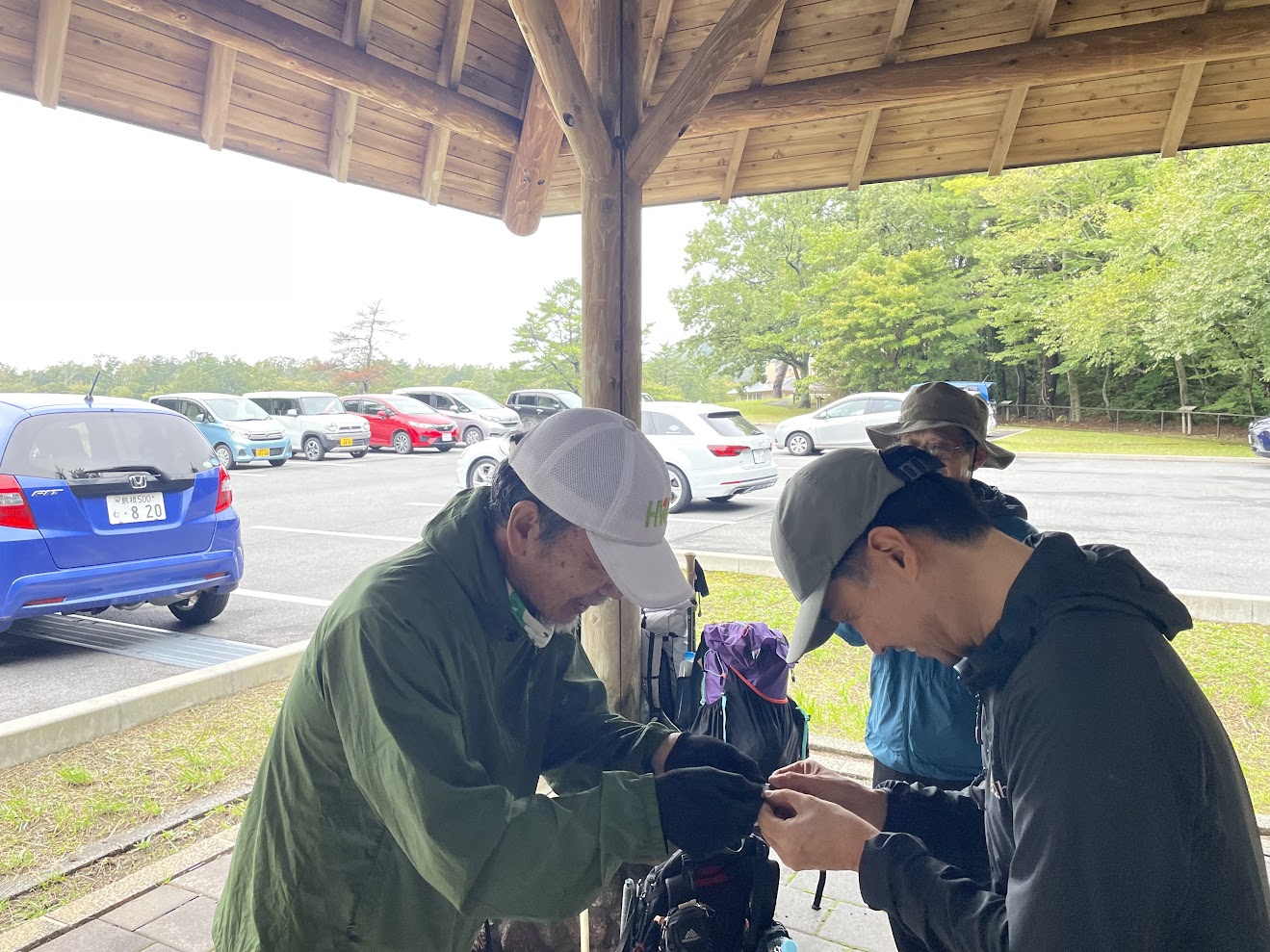 大田市の気温は日中の最高気温も20度程度とのとおり、ふきっさらしの駐車場では寒さを感じ雨具や防寒着を着込んで身支度を整えます。