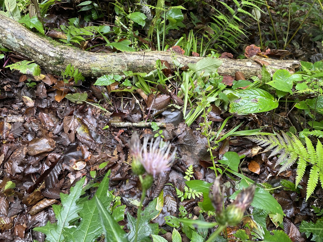 道中、盛りを過ぎたアザミとたくさん出会いました。白いお花は何かな?