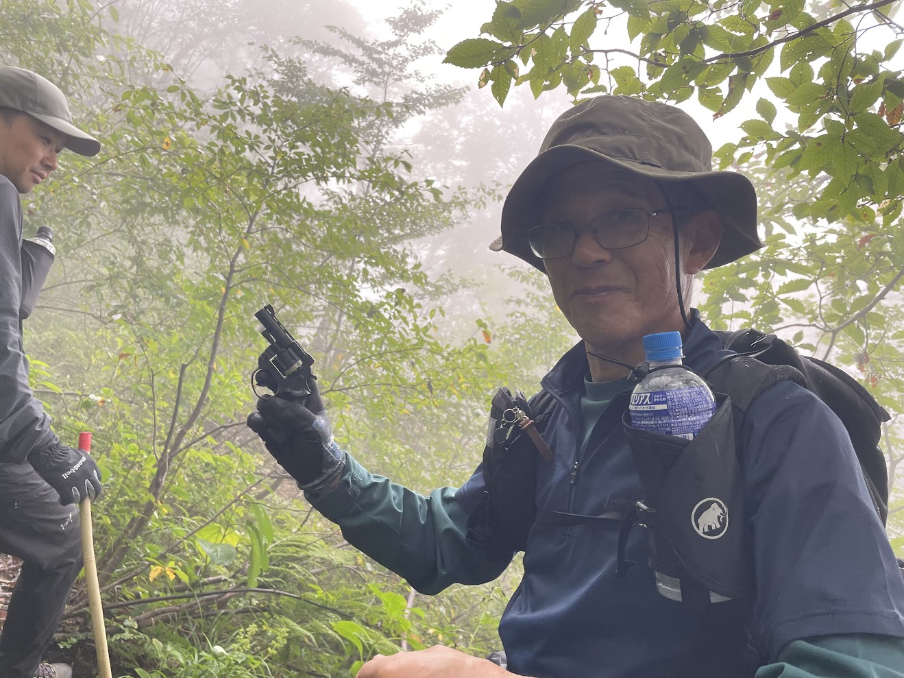 視界が悪い際には前もって音出しを。ここまでは竹の音出し棒で対応してきましたが、「火薬銃」が登場。「笑顔ください♪」に振り返ったTさん、昭和のひとなら「セーラー服と…」を思い浮かべるのがお約束のはず(≧▽≦)