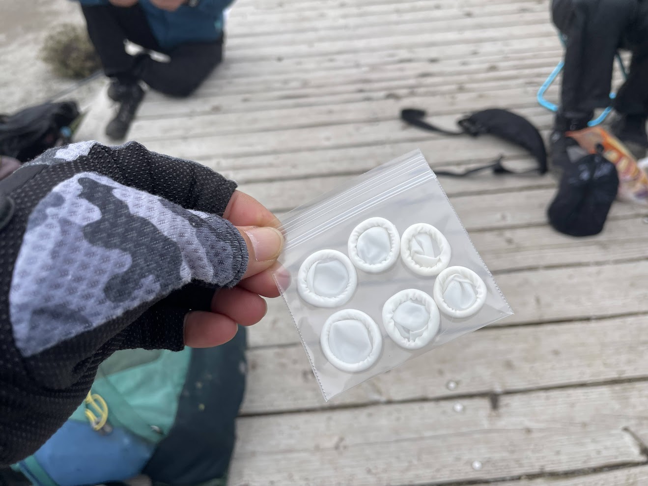 ランチタイムのあと、Mさんから装備の豆知識!レスキューセットに入れておくとおススメの「指サック」をご紹介いただきました