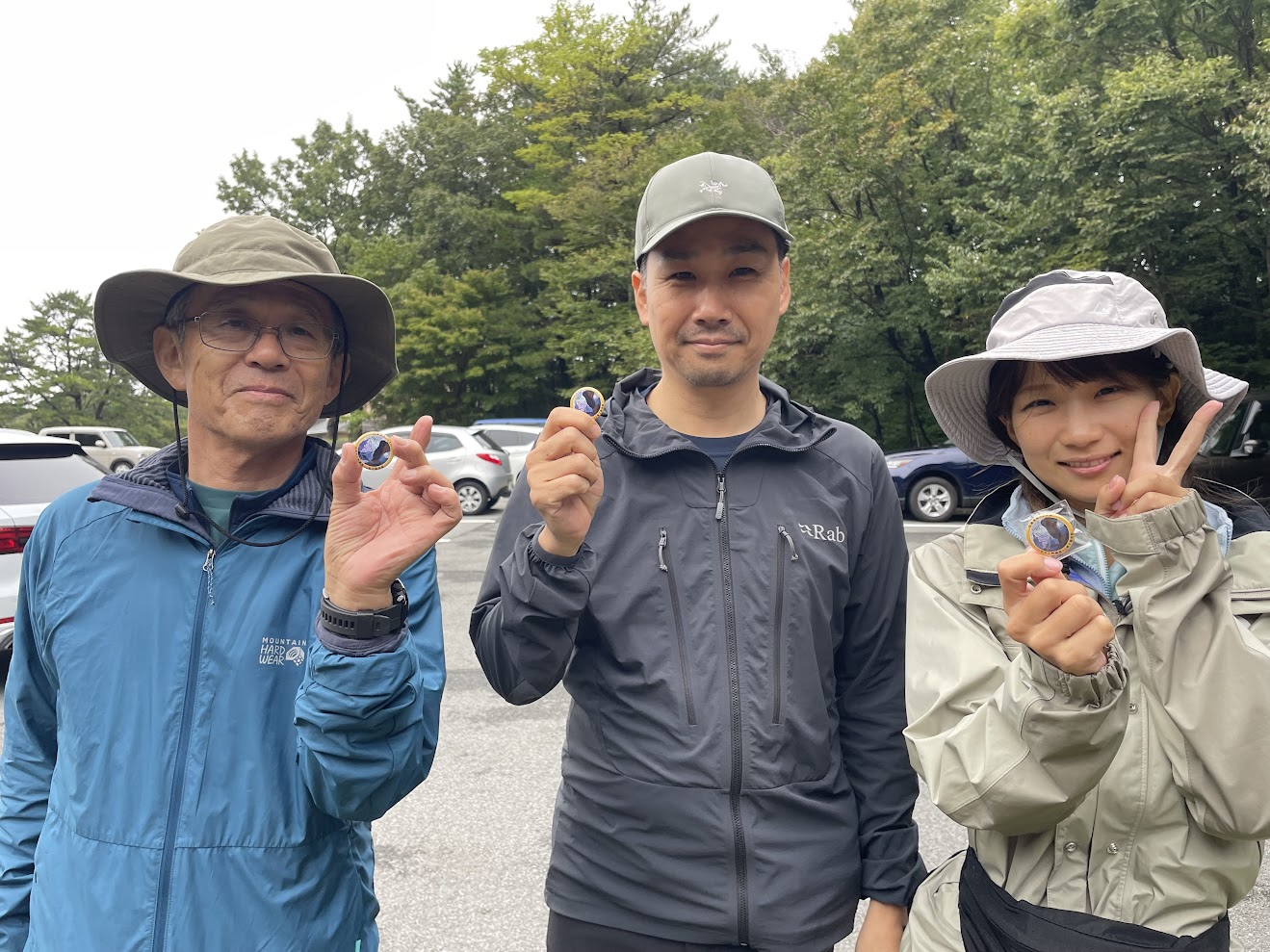 風が吹くなか集合写真を自撮りタイマーセットしていると、グループで登山している方が「撮りましょうか?」と声をかけてくださりお言葉に甘えて撮っていただき、撮りあいっこ♪