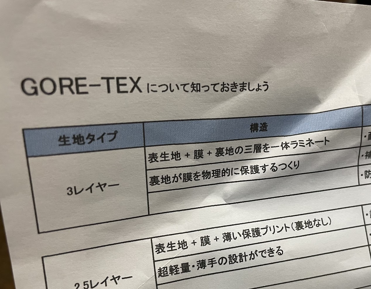 そして締めくくり。「GOREーTEX」についてお勉強しました。