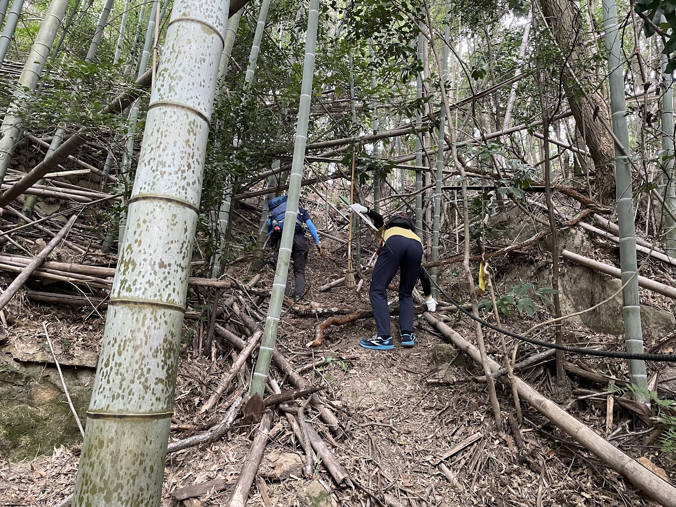 IさんMさんのランナーペアが先頭でガシガシと倒竹や倒木を除けてくださっています。