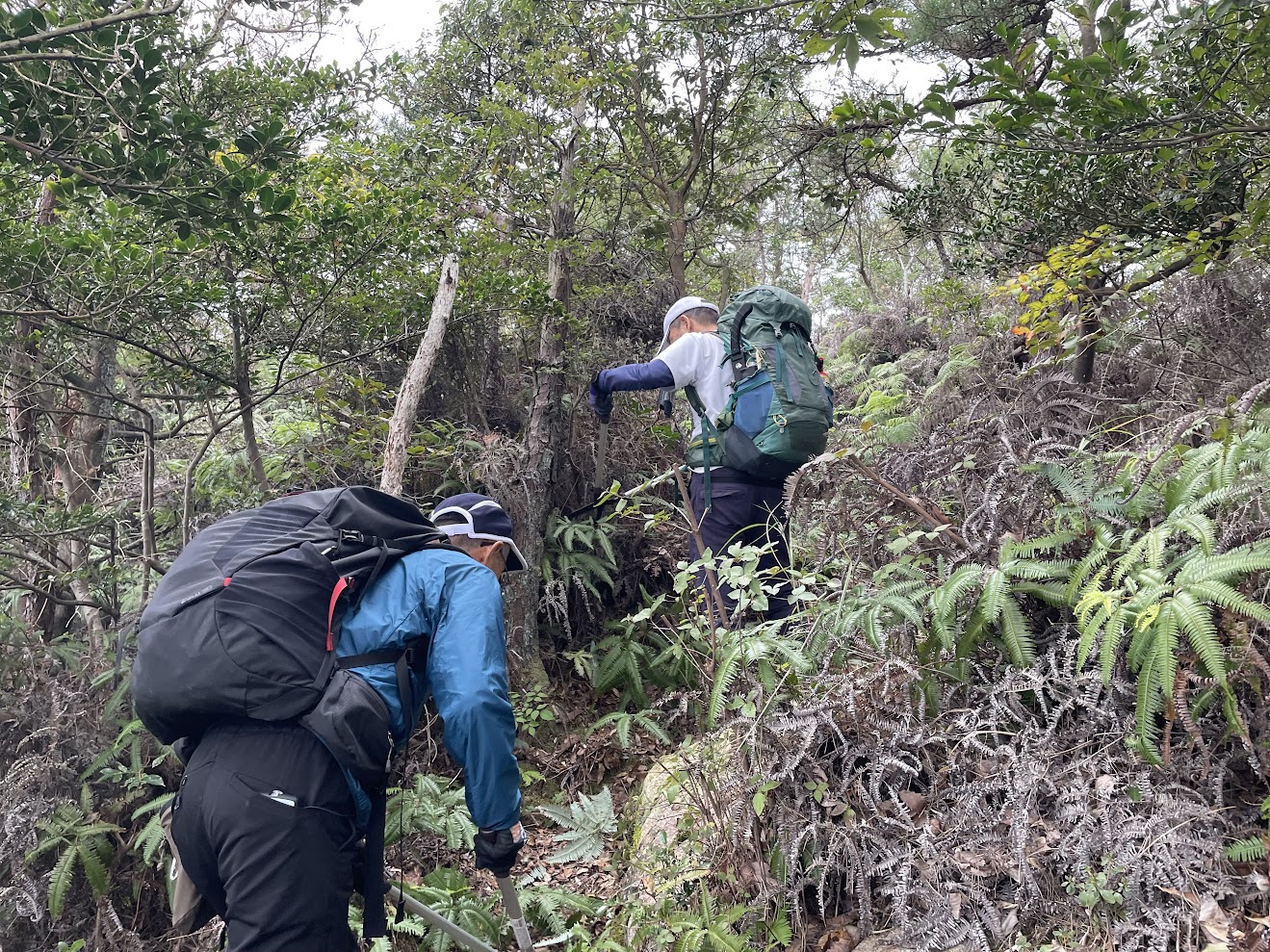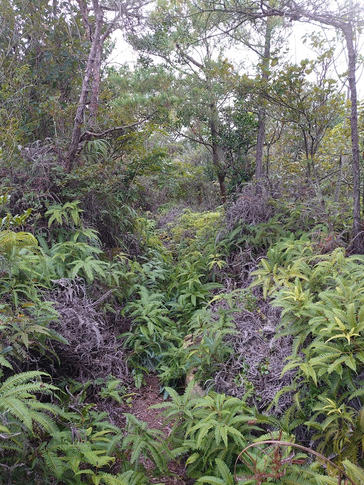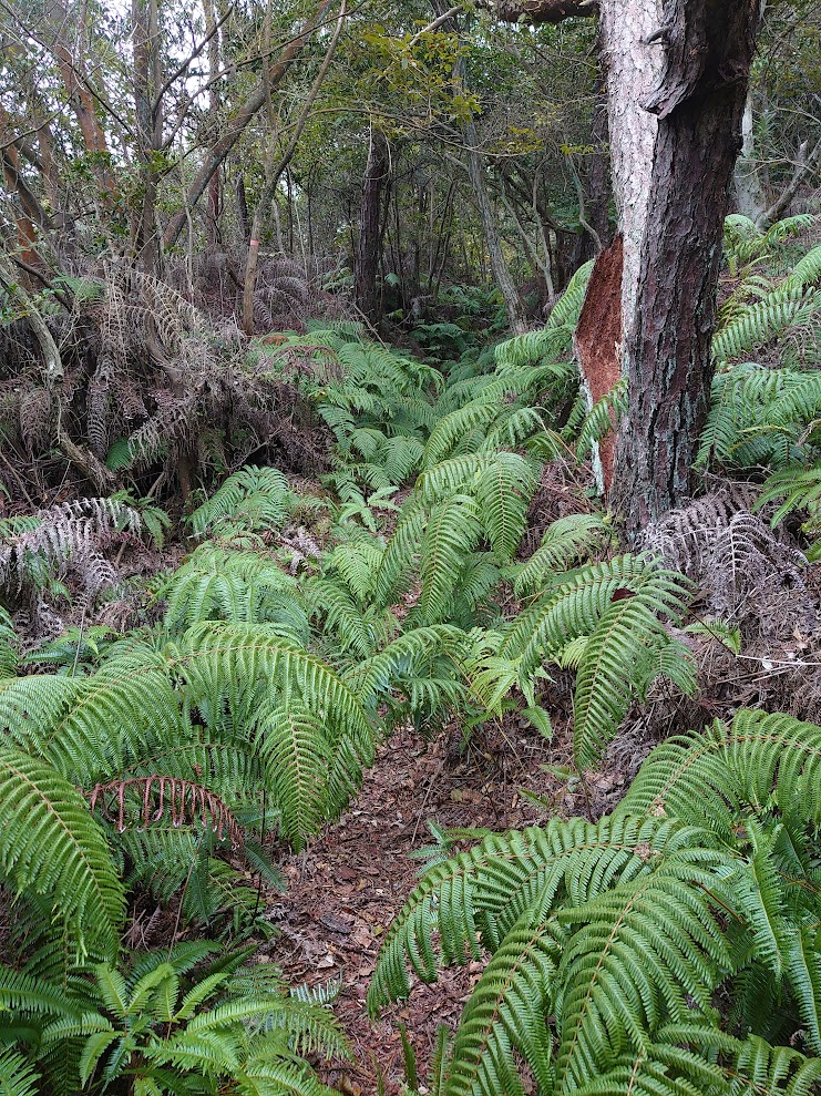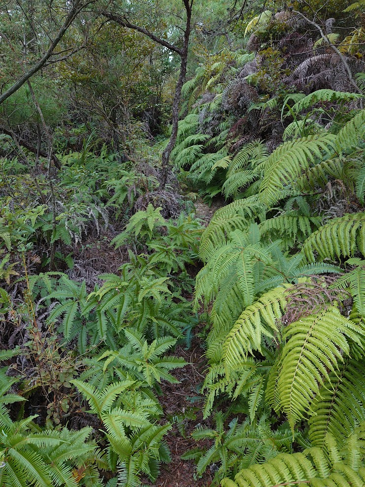 尾根道に上がり、「撮影ポイント」を懐かしみながら進むとほどなくシダゾーンに突入!