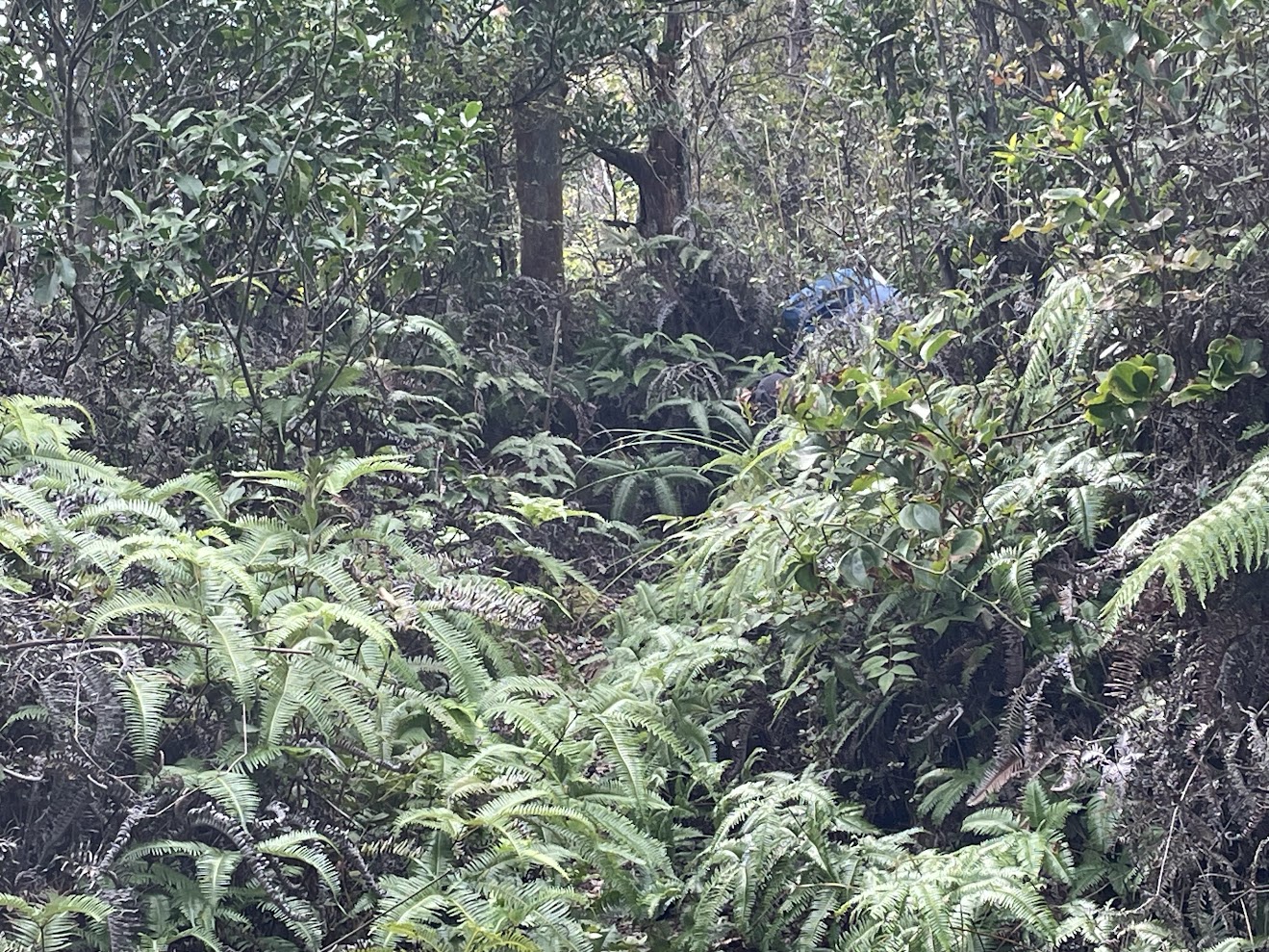 もうすぐ、もうすぐ、と進む先頭Iさんの目の前にまだまだ現れるこんもりと茂ったシダ!