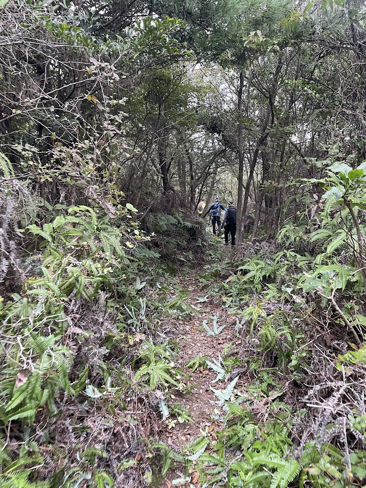 シダ刈りに没頭した先頭集団のあとに続いたT会長&Hさんが、道の脇の枝葉をかなりしっかり刈り込んでくださった様子が見てとれ、枝が顔に当たることなくスイスイ歩ける気持ち良い尾根道。