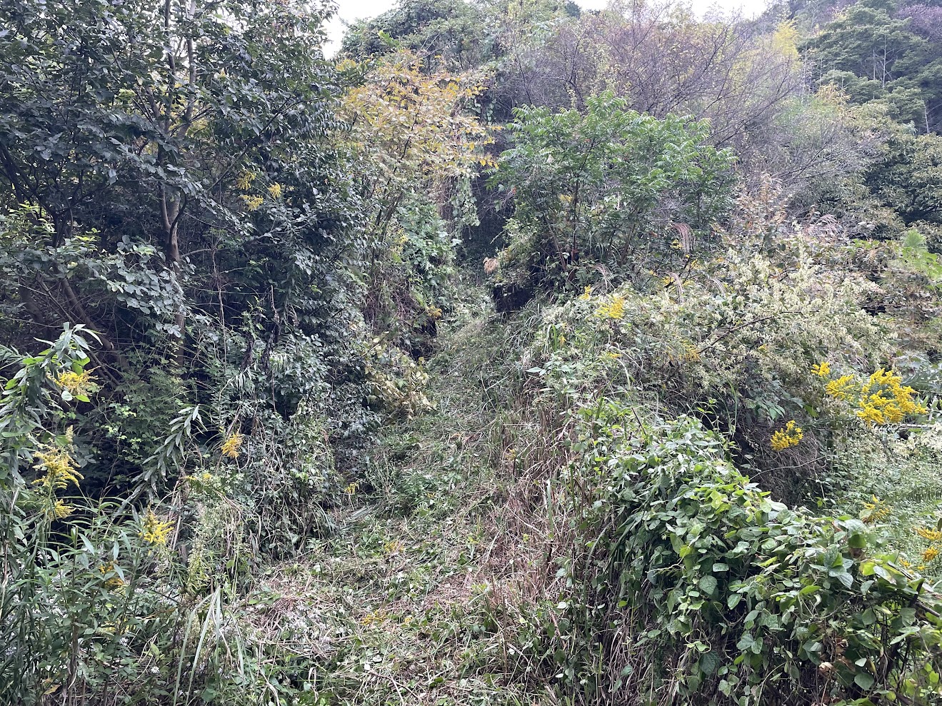 今回狙っているのは、梵潮寺から防災路を越えて尾根道に入ったところから古観音山山頂までの尾根道、距離にしてたぶん1㎞弱!