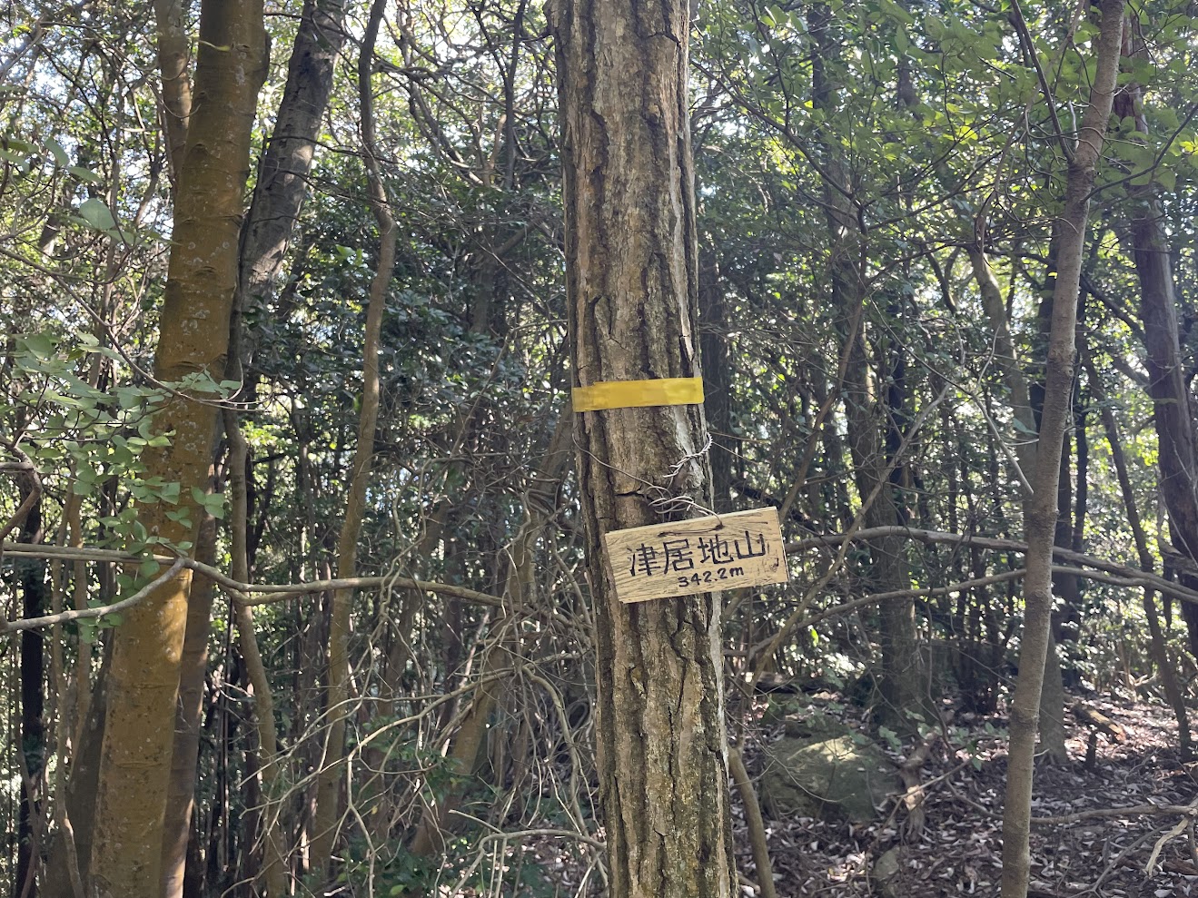 ようやく煩雑ポイントを抜け出して342.2mの津居地山なる地点に着いたときにはすでに40分経過。移動距離約150m。やばい。