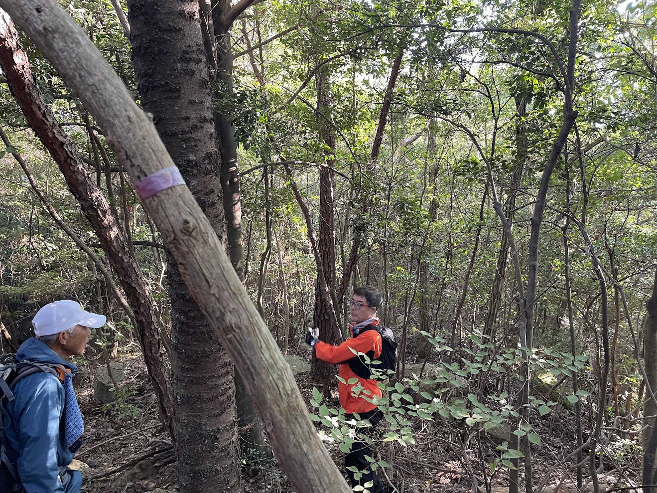 トレイルと防災路が交差する339.1峰(瀬戸島山)と330.8峰の中間地点あたりの298峰近くにT会長の車を停め、T会長チームの3人ははここから南下して330.8峰を経て毘沙門堂分岐まで下り、298峰までピストン。整備に注力する箇所は少ないかもだけど歩行距離は長くなります。