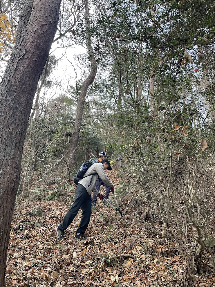 逸る気持ちとは裏腹にこの日の参加者は3名💦 とはいえ、T会長、広報Mともうお一人は、先日のパタゴニアハイクで初めてお会いしたMさん。トレランを始めたばかりとのことで、「自分が走るトレイルを自分で整備したい」と、さっそくご参加くださいました!おかげで最少人数が確保でき、感謝のスタート!!