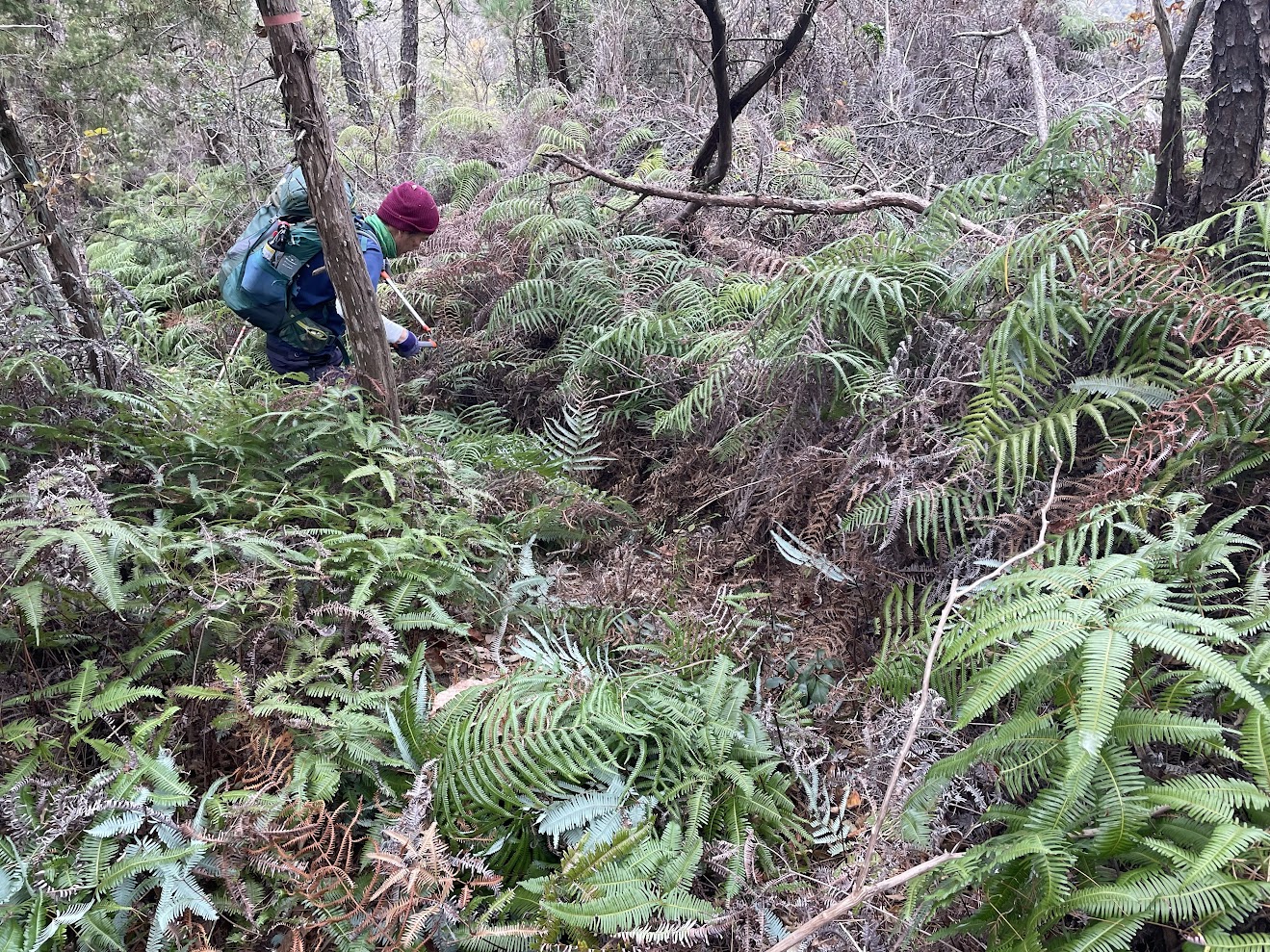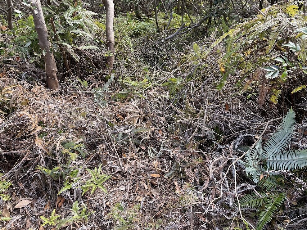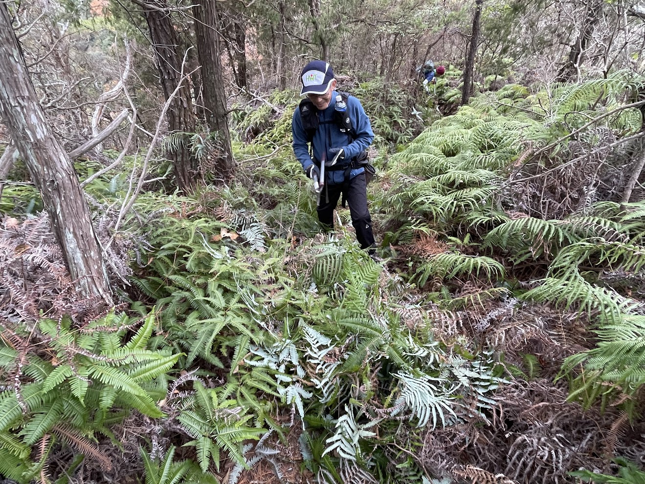 先頭がシダに埋もれながら刈り進み、後続者がさらに刈り込み整理するとこの通り。