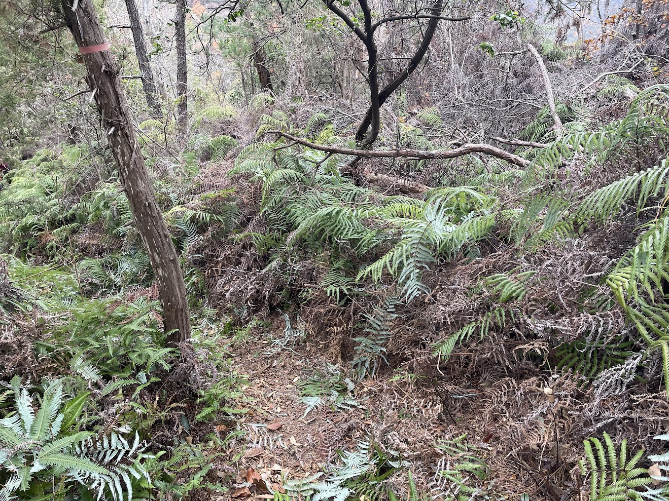 長く歩かれて踏み固められた道は、シダや草が生え、枝葉に覆われても少し手を加えるだけで見事に再生することを改めて実感!