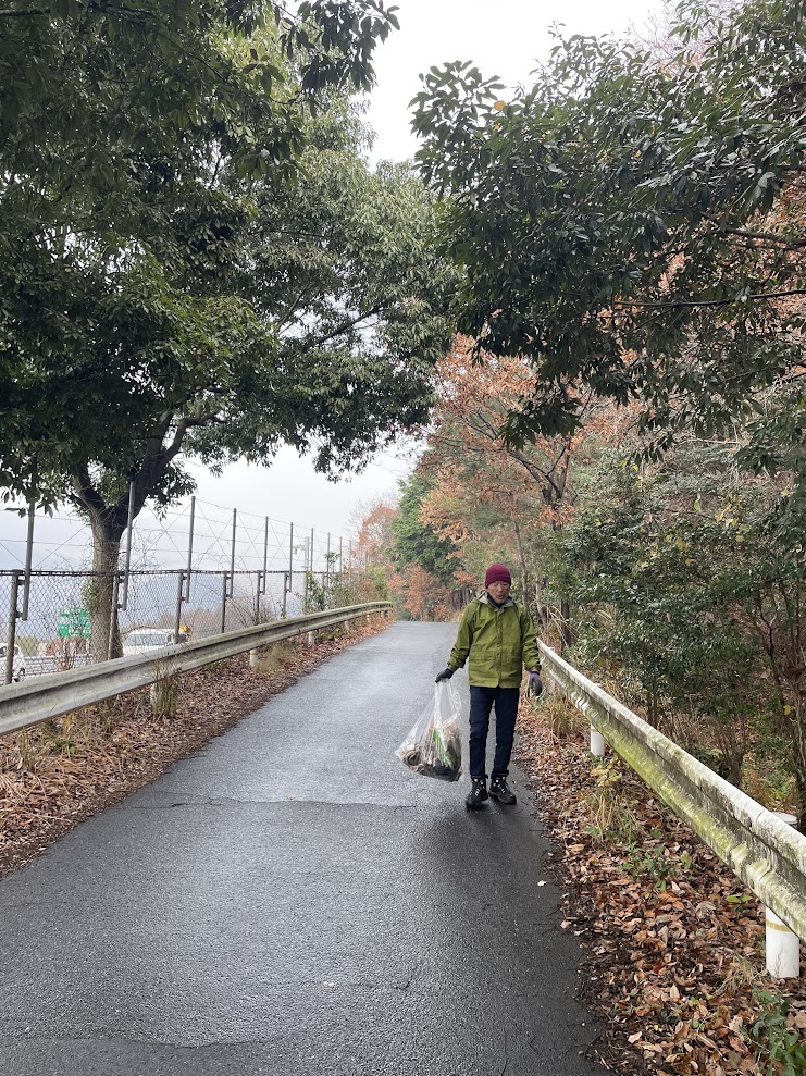 熊手で掃いたり集めたごみを収集スポットに運んでくださっているTさんと合流して、、