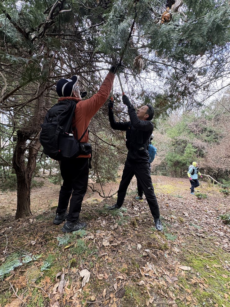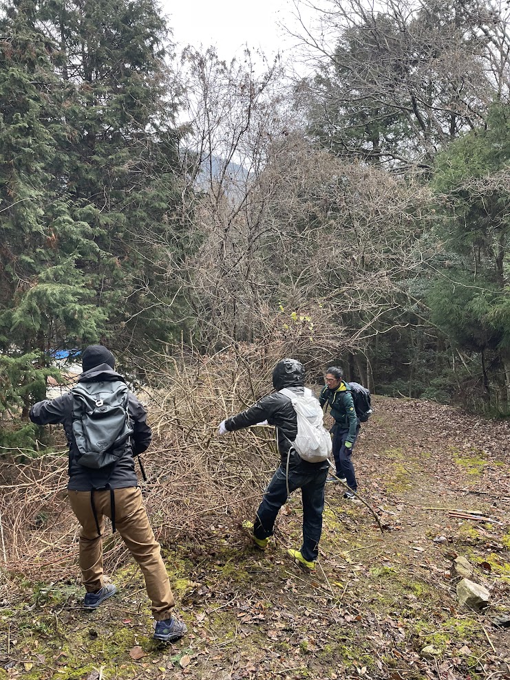 翌日から大寒波の予報、そして三連休の初日にも関わらず集まった参加者は15人!2チームに分かれて整備活動を行いました!