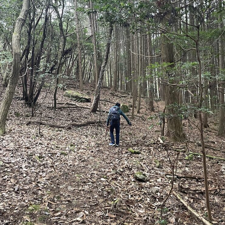 登りの後半では先頭ランナーチームとすっかり離れてしまい、倒木が一つもない道を快適に歩きます。うっかりまっすぐ行ってしまいそうなつづら折りに道筋をつけたりと、細かい点にしっかり手をかけれます。