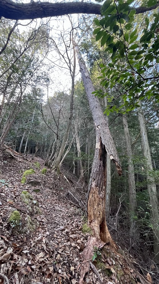 松の木の皮や崩れた幹などがあちこちにあったので、さては、、、と聞いてみるとやはり倒木のオンパレードだった模様!