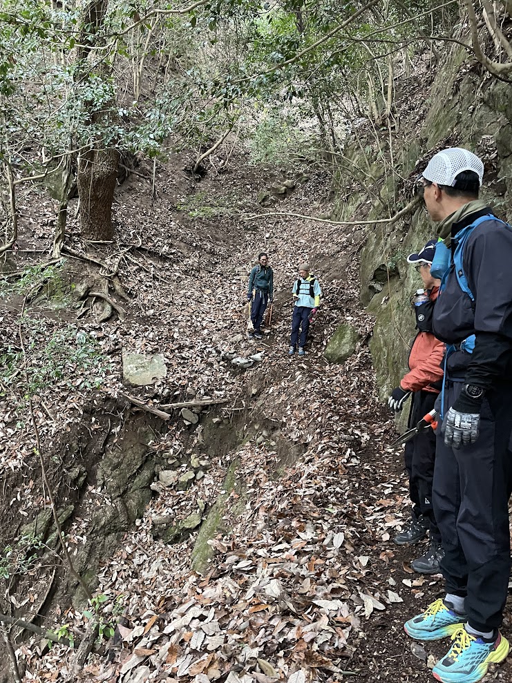 谷筋の斜面についた道は時間とともに細くなっていき、普通に歩いても冷汗がにじむエリア。夜間トレイルランナーが走る時の足元が心配…。そして、今後将来に向けて道は存続できるのか?