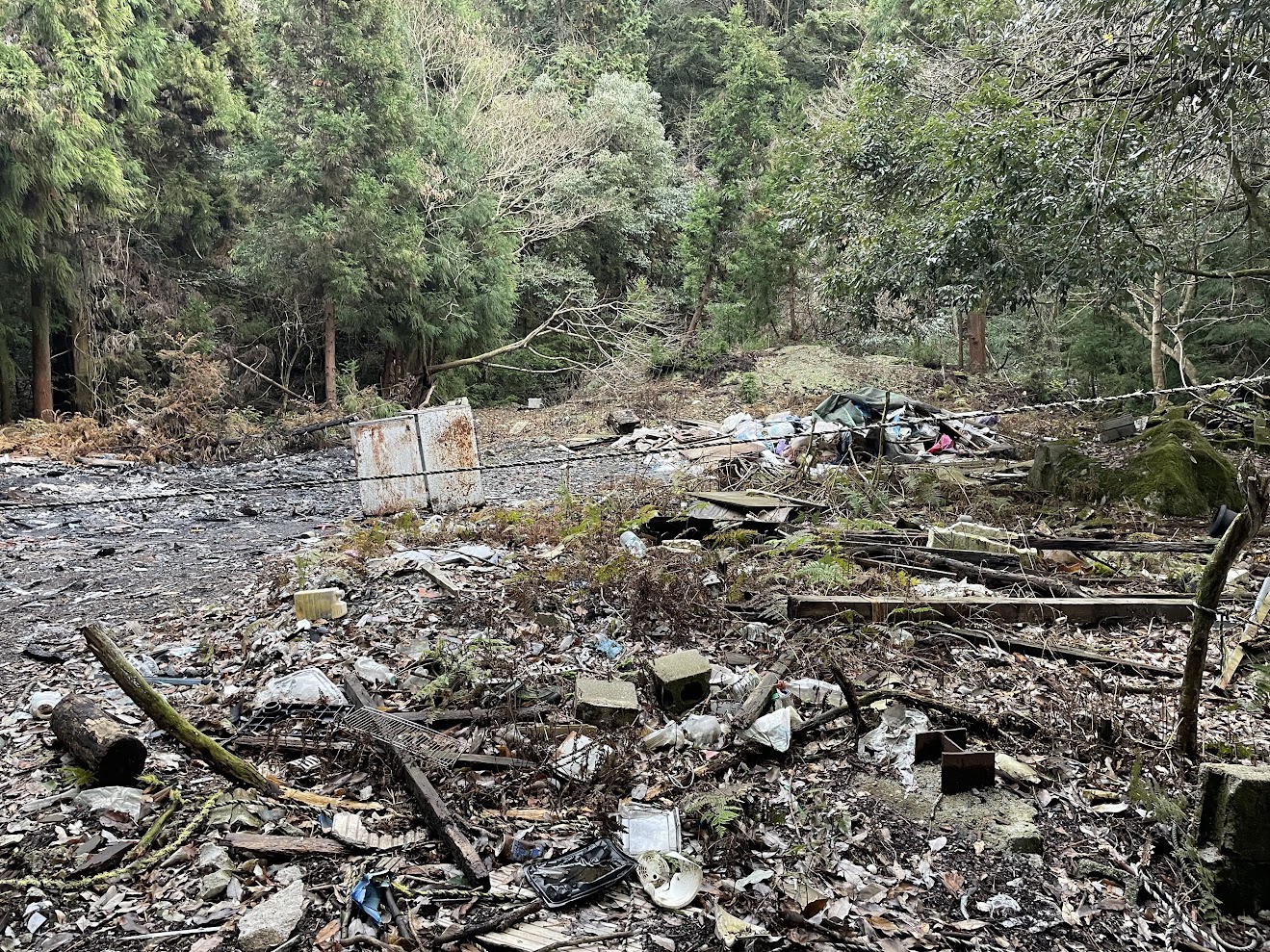 古びた建物がこれまた時間とともに崩れ、がれき化し、中のものが露出してゴミの山となれば外からもまたそこに向けてゴミが捨てられて異様なありさまを呈しているスポットは、否応なく目に飛び込んできて、とてもタフな大会に臨むトレイルランナーの方々をお迎えできる状態ではない。。。