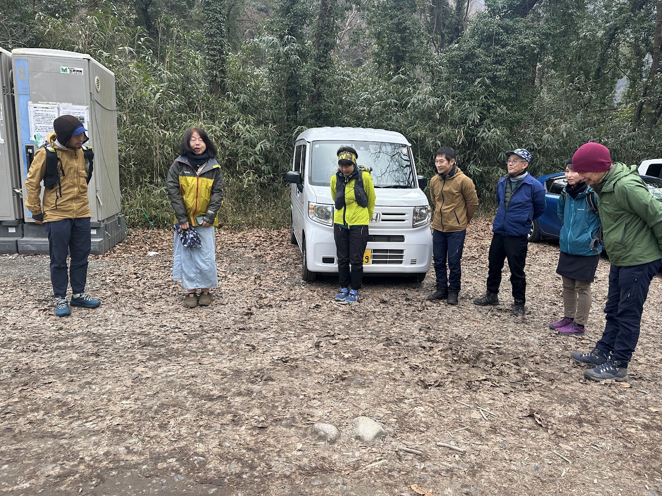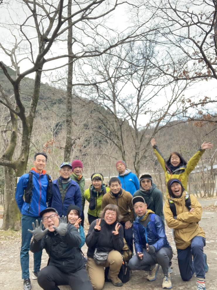 この日のミッションのために予定を合わせてくださった、実行委員長のOさん、トレイル整備の歴戦の猛者Mプロを含め総勢13名があき亀山駅、柳瀬キャンプ場に集合。トレイルランナーの皆さまは、大会コース整備始まって2か月目にしてすでに活動をご一緒した方ばかり。