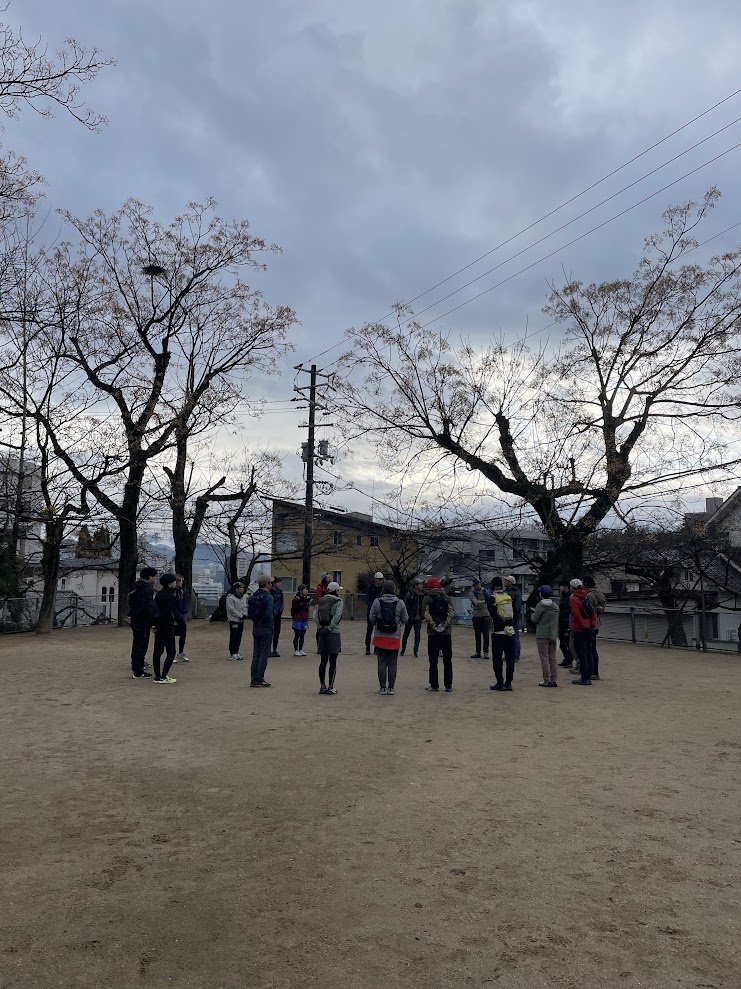 人数が多いので、順次、三滝寺への途中の公園に移動。