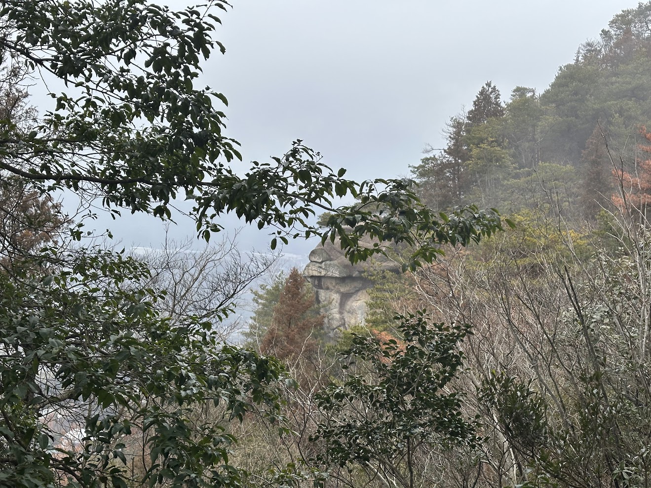 雨で濡れているから岩場に上がるのは自粛し、景色だけ堪能。