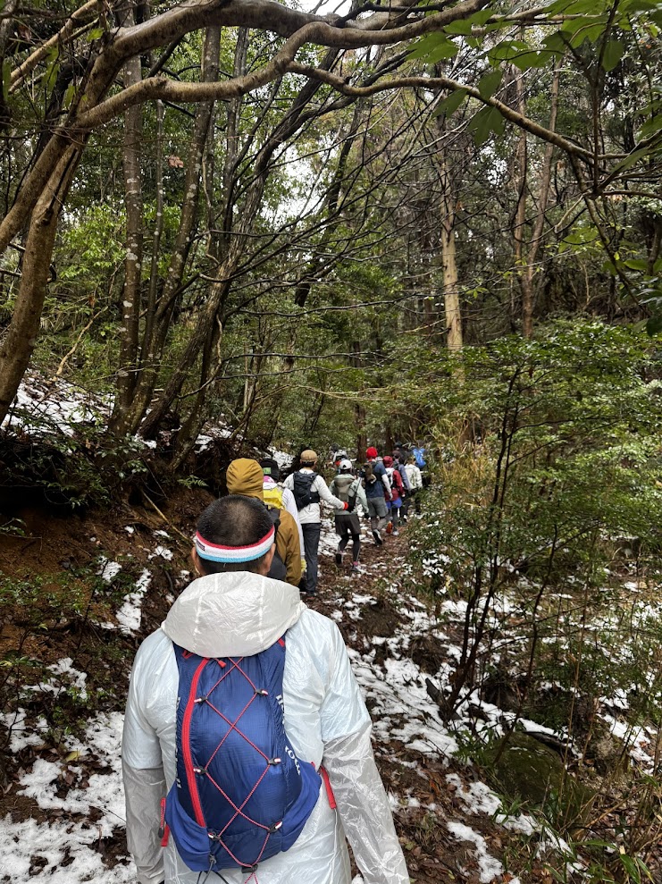 イチダイトレイルを、「広島のトレイルランナーの方々に広く知って楽しんでいただきたい」との想いが、パタゴニア広島さまによる「はじめてのトレイルランニング〜いちだいトレイルを走ってみよう〜」の同日開催に繋がり、当日はたくさんのトレイルランナーの方々がご参加!走るチーム、歩くチームの2チームの総勢32名で、雪が残る雨上がりのイチダイトレイルを楽しみました!
