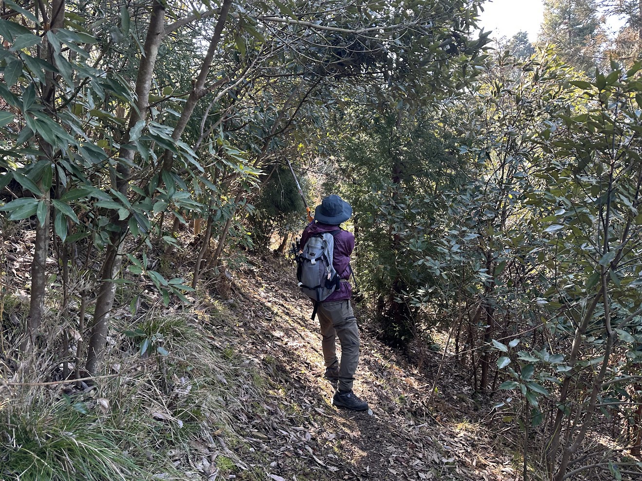 杉林を抜けて日当たりの良い箇所の雑木は伸び、また、先ほどと同じイバラエリア。