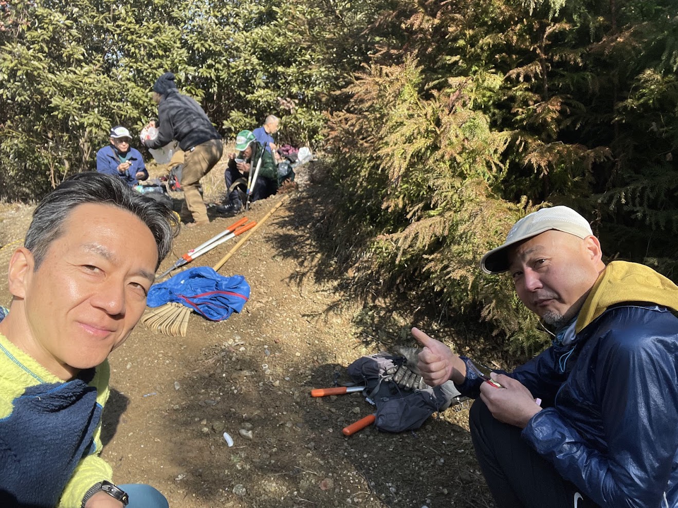 うず高く積もっている落ち葉はある程度除けたいけれど、土の表面が見える、表面が削れるほどには掃かないほうが、グリップが効いて良いとおしえていただきました!。トレイルの保持という観点からも表層を作っている落ち葉は掃かずにそのままにしておいたほうが良いのでは?とうっすら感じてもいて、特に、ガレ石などがない土メインの道では、落葉を掃き切ってしまうと、雨が降った時にずぶずぶのぬかるみになってしまい帰って危険度が増す、と。