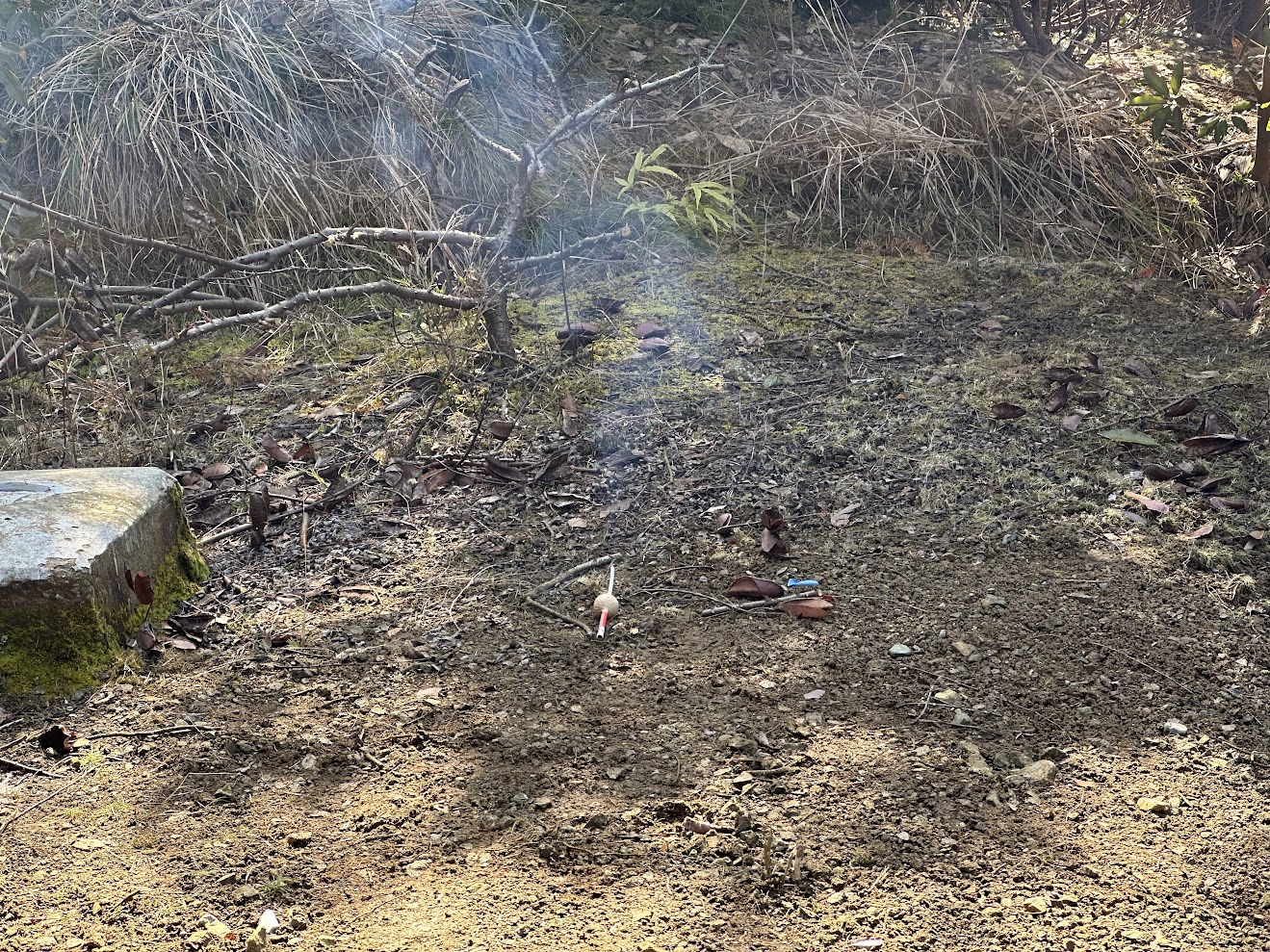 倒木と一緒に落ちてきた枝の残骸や樹皮などを片づけて、こざっぱりと。