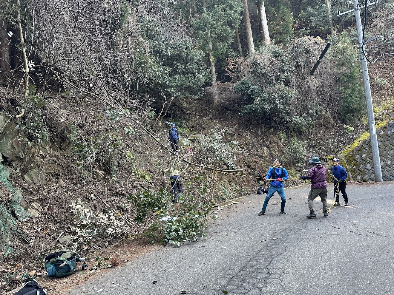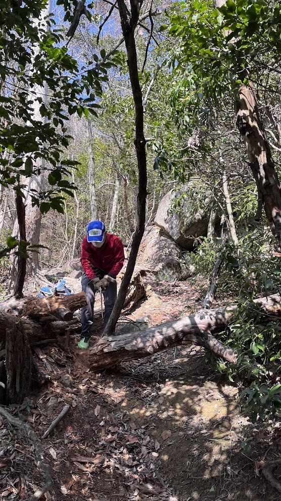 「その間、登山口周辺の棘他を完全に除去し、広く明るい登山口に生まれ変わりましたが、多くの時間を割いたため、下山口~100m位を残し撤収しました。」