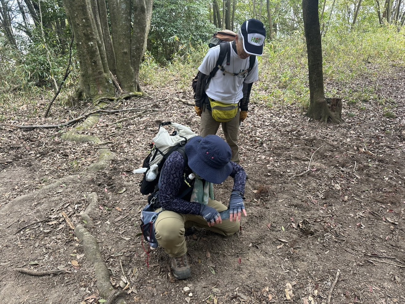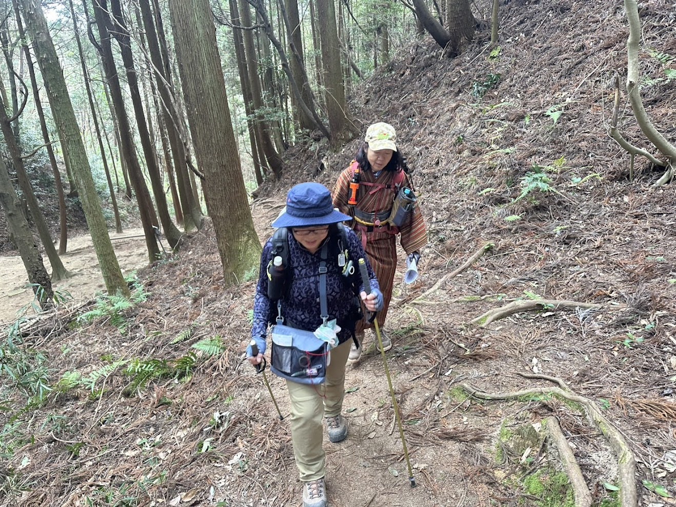 谷筋に向かうMさん&Iさん。Fさんは尾根筋を選びIさんとMの3人が進みます。