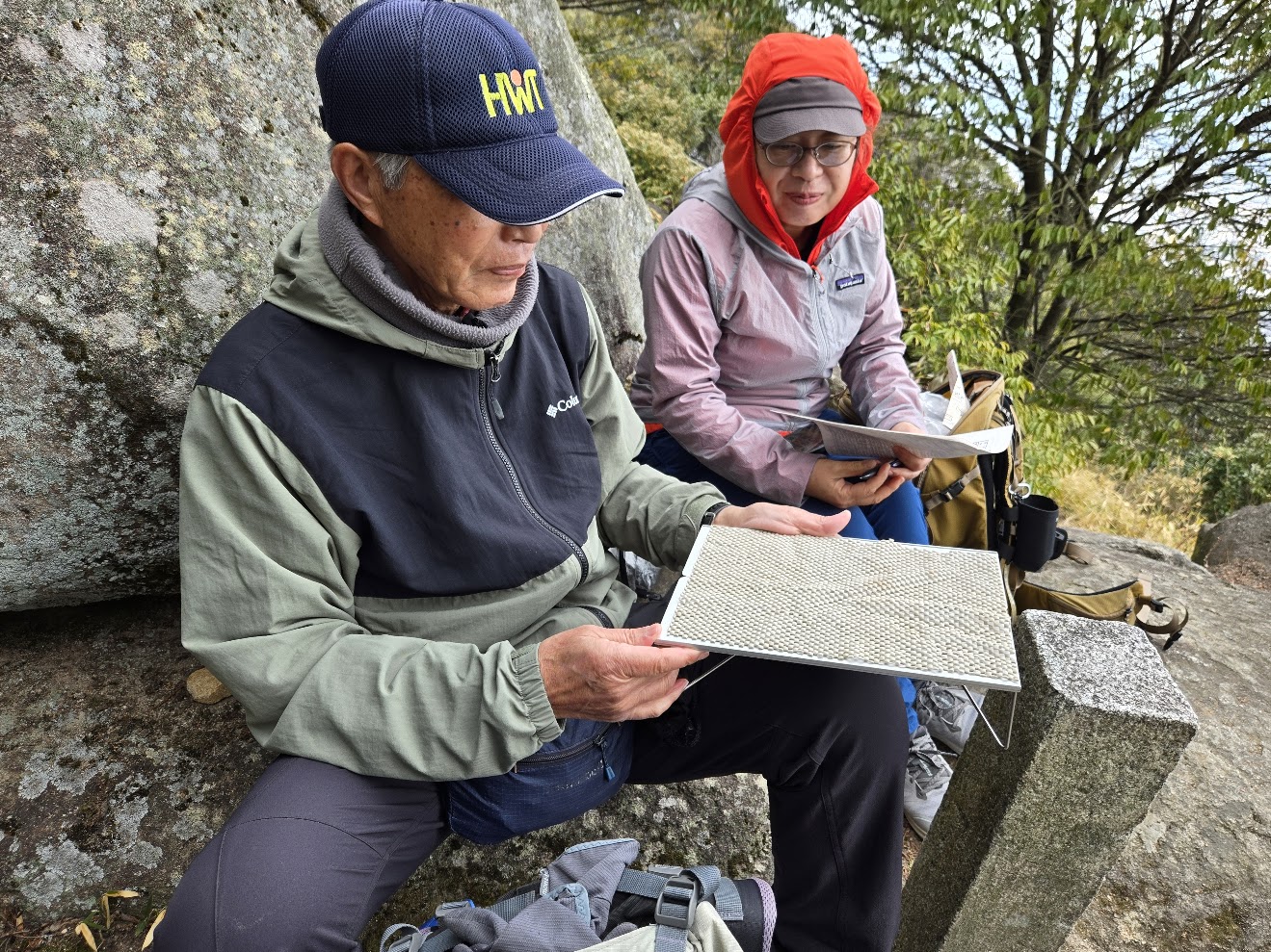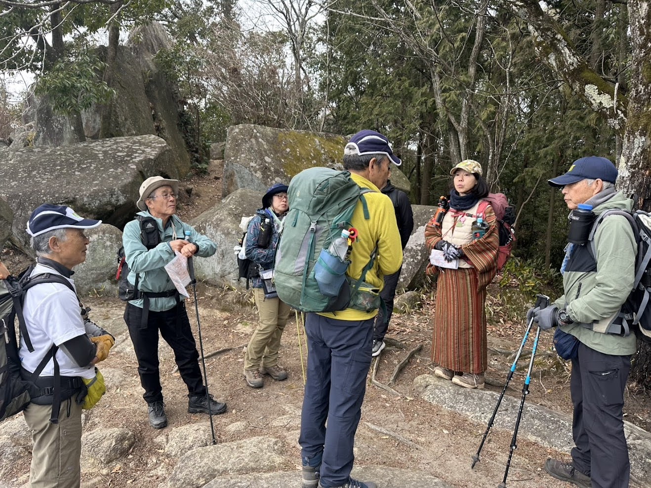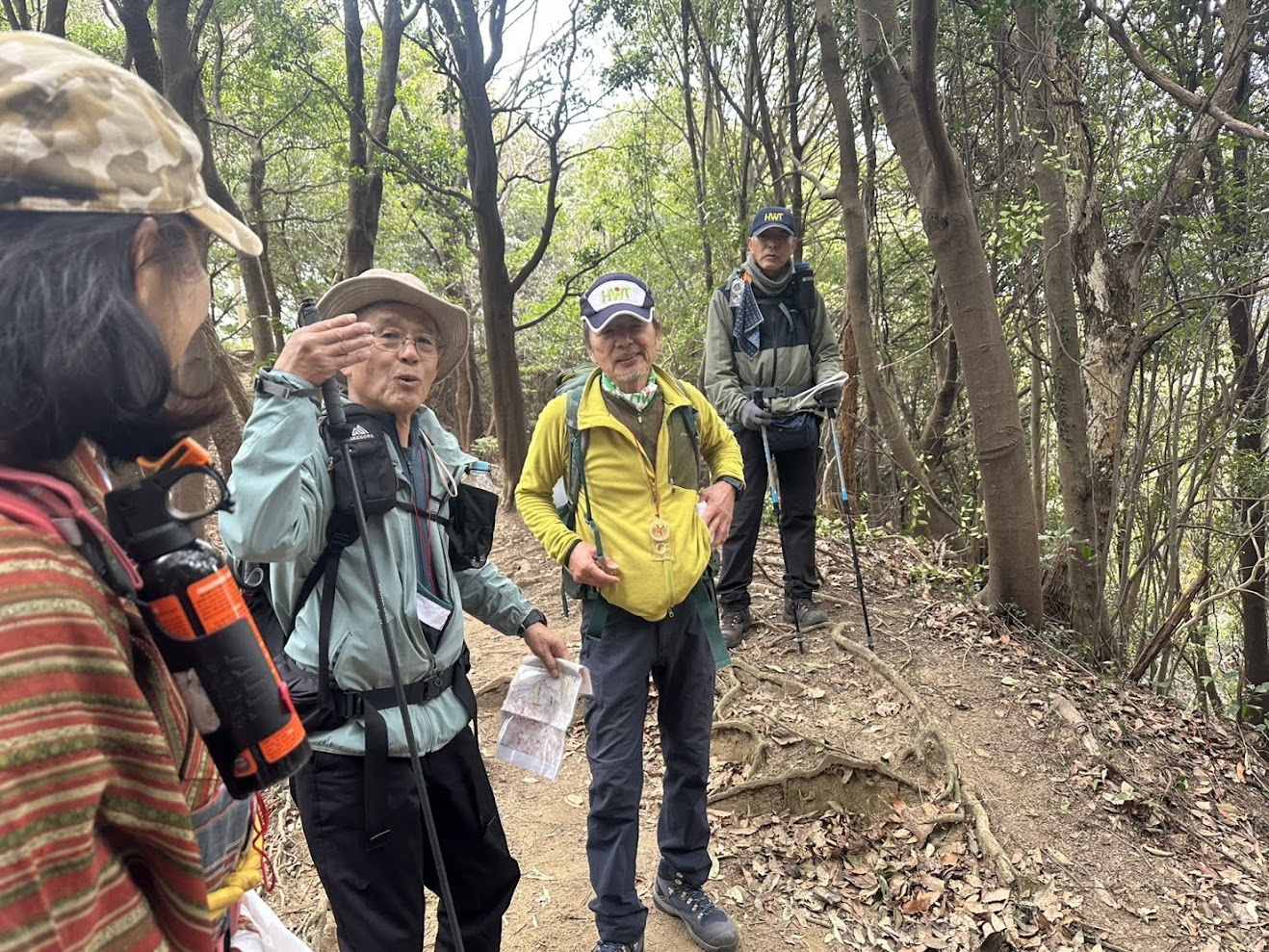 続いてFさんIさんMチームが到着。登りで汗ばみ衣服調整に悩むところ。「待機中は1枚羽織って、出発するときに上着を脱ぐと良いですよ」のアドバイスを…。