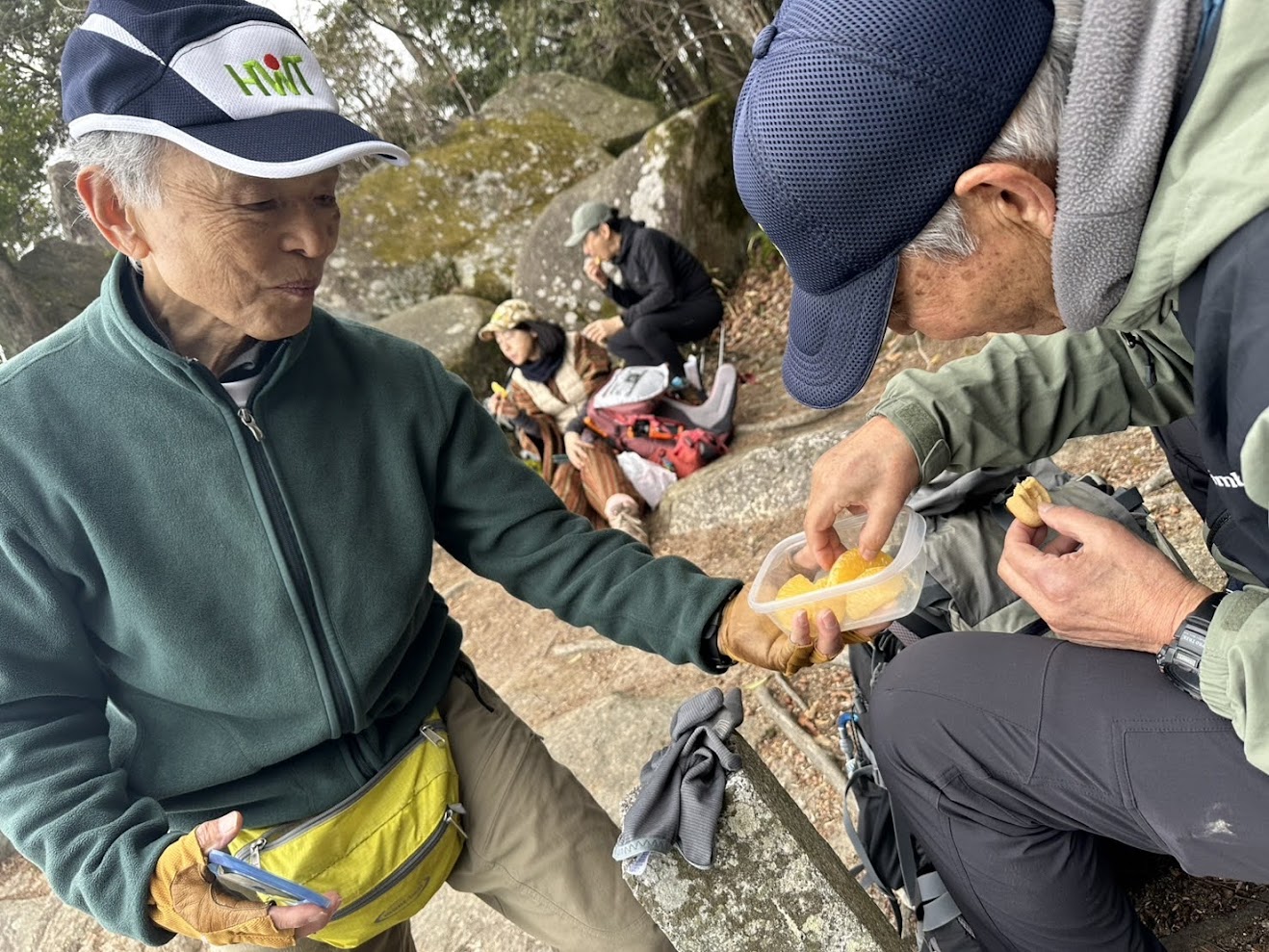 Iさんが八朔を振舞ってくださり、ランチのエネルギーに加え、疲労に沁みる酸味で元気回復!いざ、下ります!