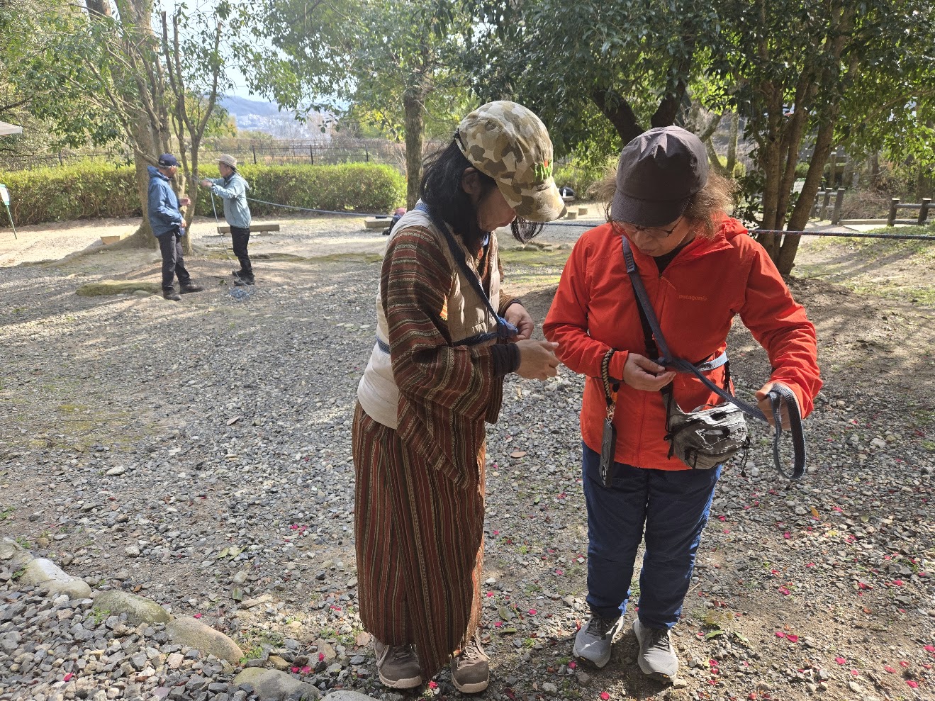 前日は恒例の大会コース整備。阿武山での奮闘の余韻に「お疲れさま」のご挨拶はFさん&M。3チームそれぞれのチームカラーに笑いが絶えず、春の暖かさと春風の涼しさに温度調整も大忙し、2か月ぶりの実地での学びに記憶を辿りながら頭はフル回転!