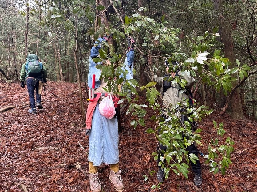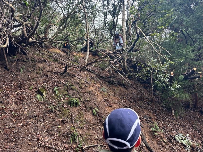 どの部分をどう刈り込むのが良いか?と試行錯誤しながら、トレイルランナーのKさんにアドバイスを求めると、少し登って下り目線で「そこの角を刈り込むとその先の道が見えて良いです」と気づきを教えてくださいます。
