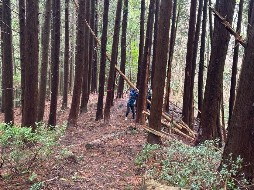 松が少ない杉林のせいか、倒木は少な目。とはいえ、ゼロではなく、