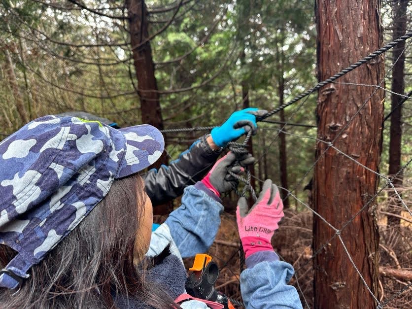 その後も、浮いたネットの上に倒木を置いてカバーしたりと対応し、鹿除けネットエリアを通過。