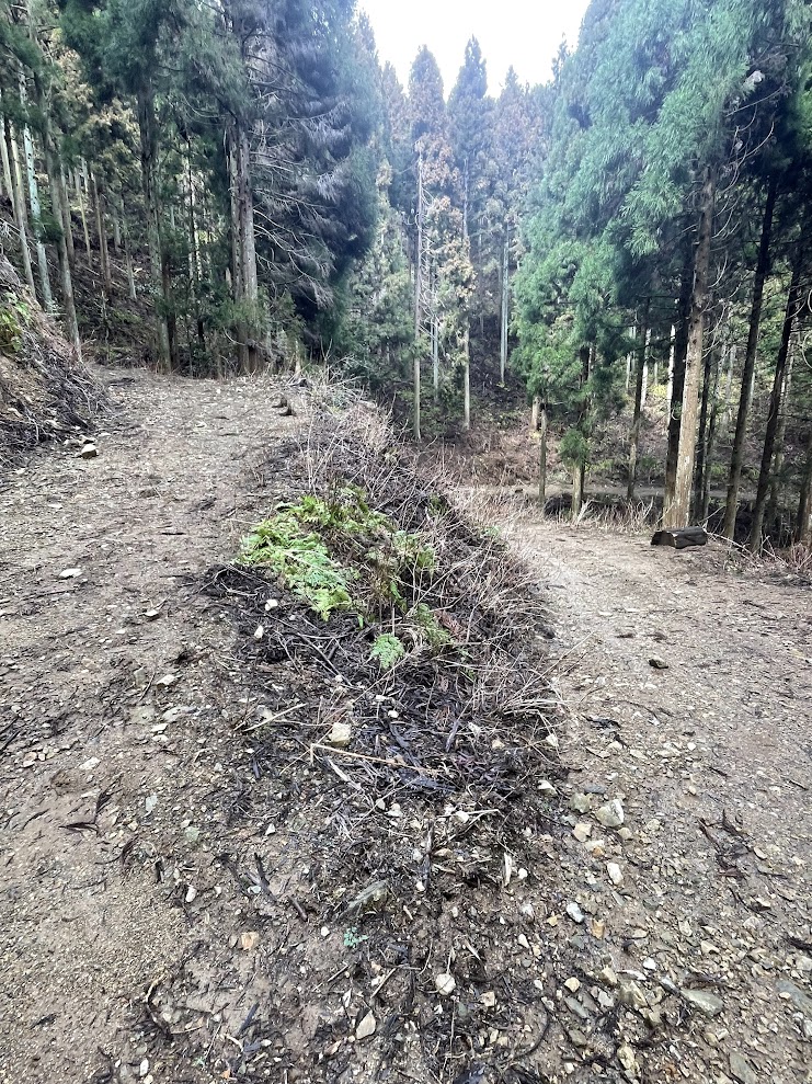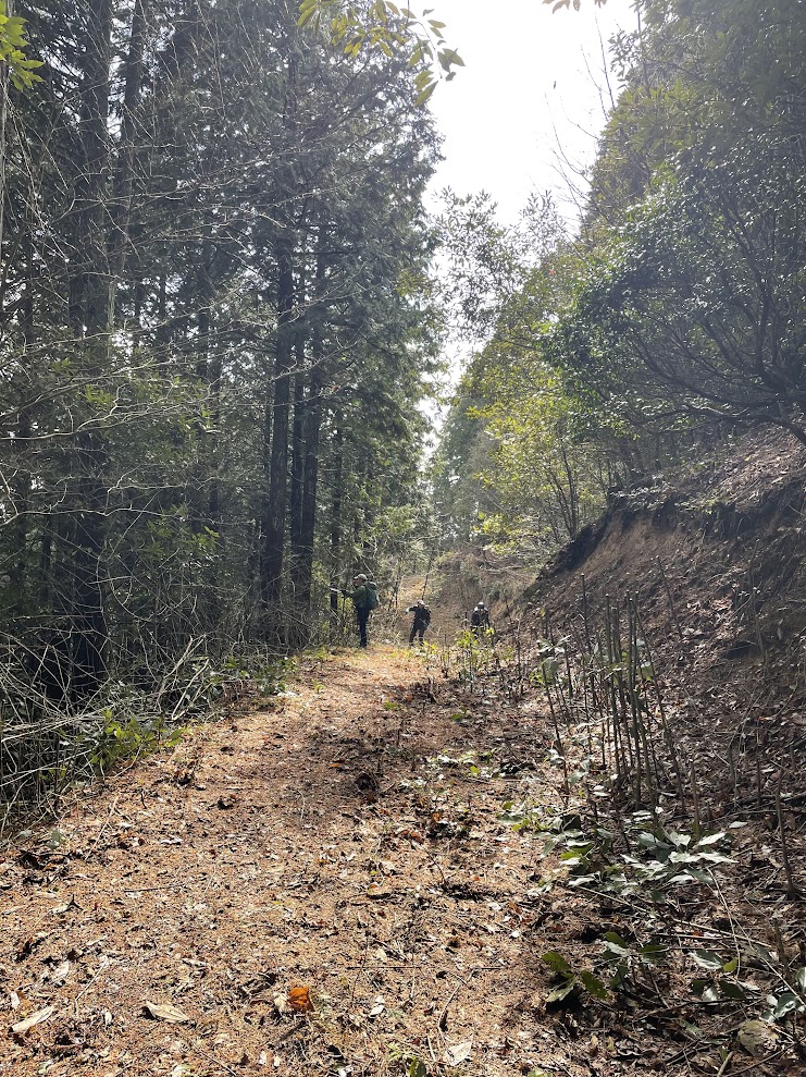 中倉峠から備前坊山頂分岐までは登り(0.8km)、備前島山頂分岐から尾根道を経由して急斜面を下り(約0.4㎞)、そこから林道のにょきにょきロード(約1.0km)へ。無事ににょきにょきロードへ行きつけるか?!