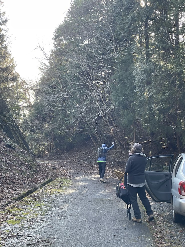 活動のスタートゴール、浜ヶ谷からの林道がとても綺麗に整備されていたので奥まで車で乗り入れができるようなら車で送ってもらい、林道からのスタート組、中倉峠からのスタート組の2チームに分ける案も検討しましたが、